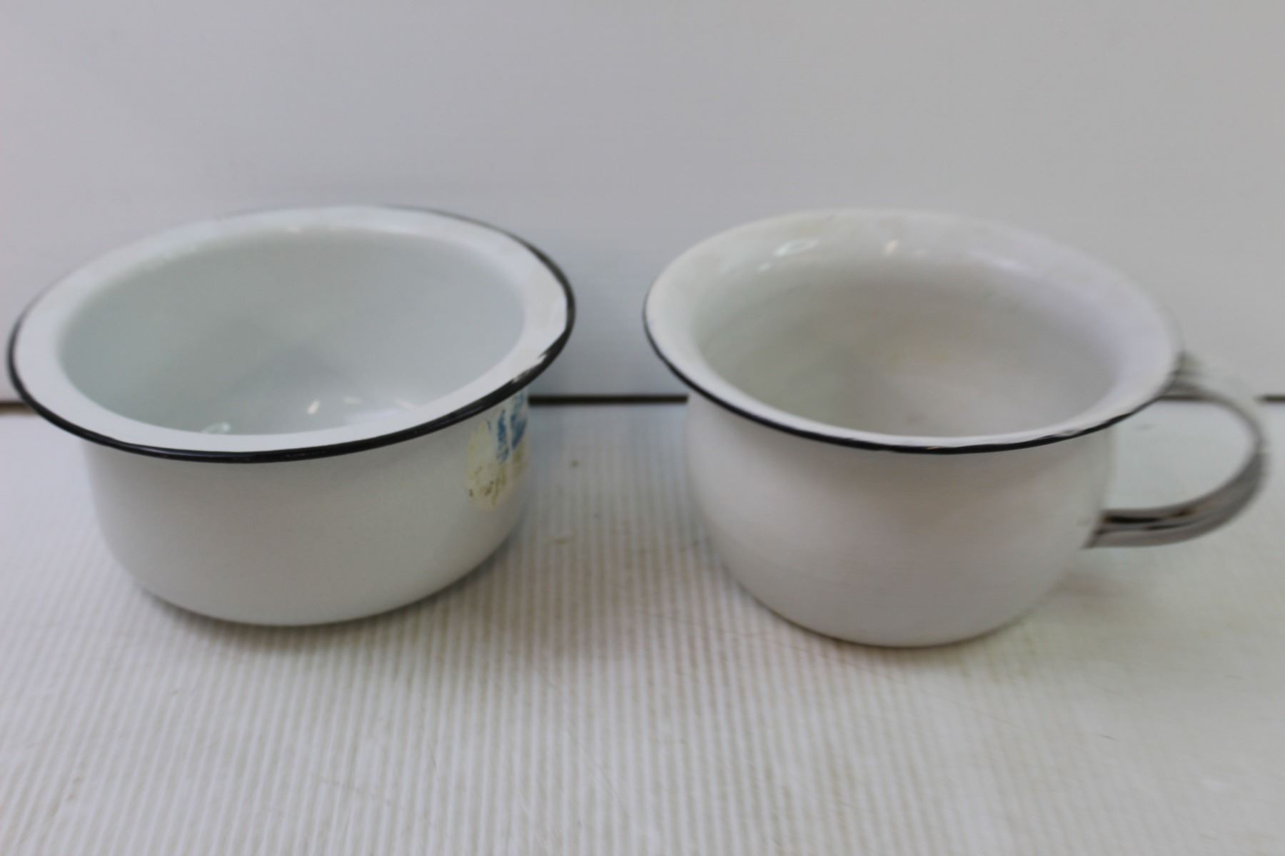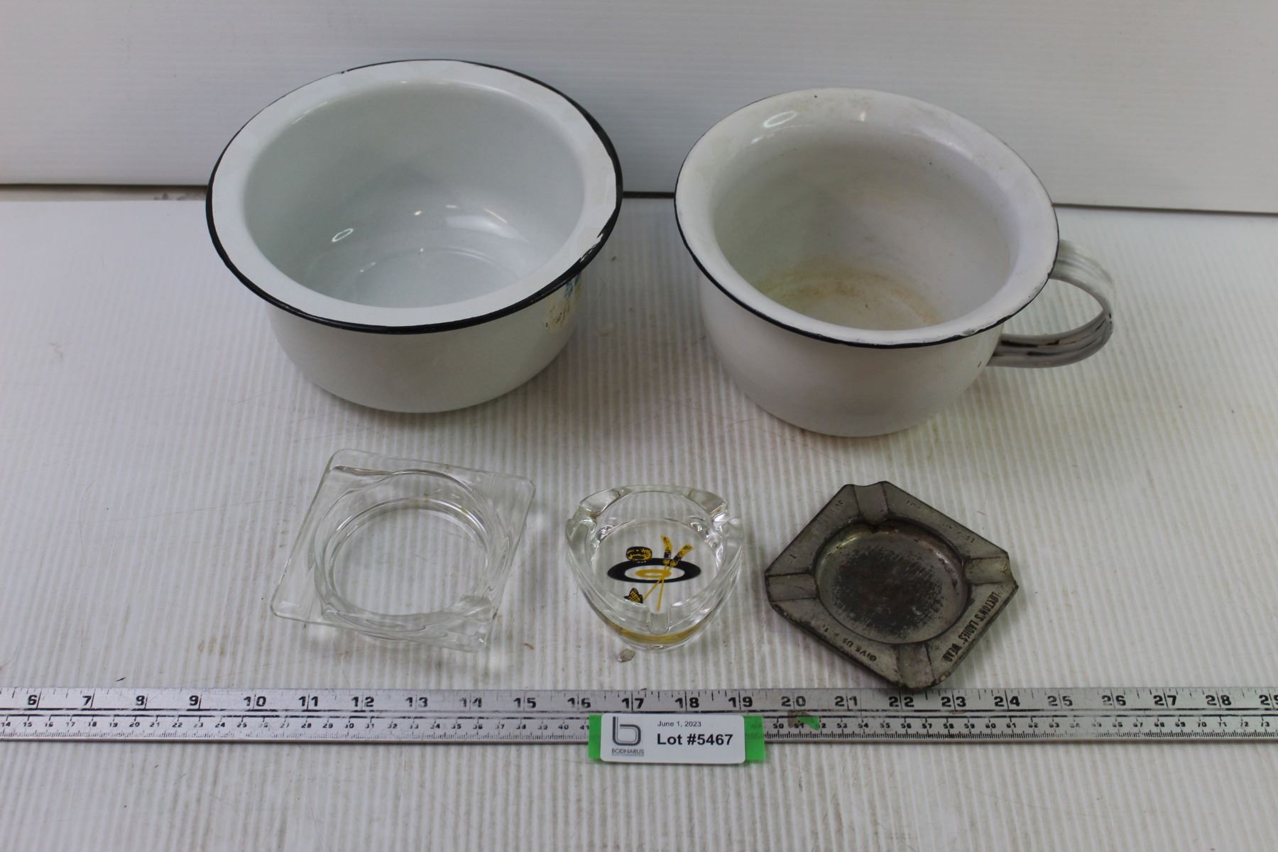 (2) B+W Enamel Pots+ (3) Ashtrays
