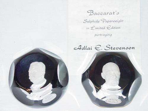 (2) BACCARAT LIMITED EDITION SULPHIDE PAPERWEIGHTS W/ ORIGINAL BOXES: (1) ADLAI E. STEVENSON W/ CERTIFICATE & (1) TEDDY ROOSEVELT-NO CERTIFICATE