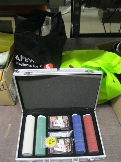 2 BAGS OF PUZZLES & A CASE OF POKER CHIPS