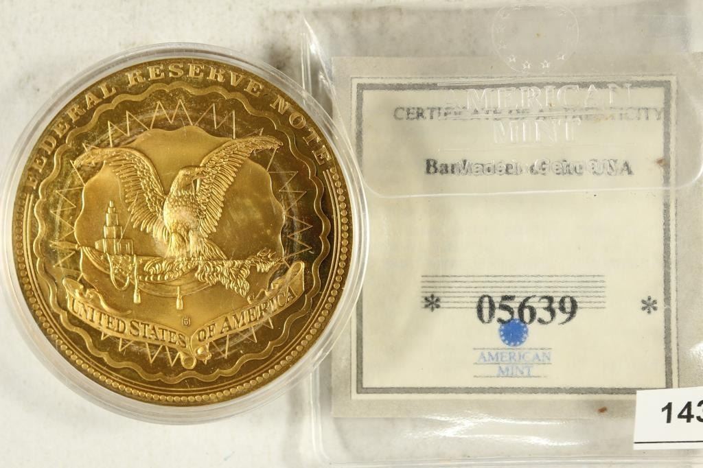 LAYERED IN 24KT GOLD TOKEN, $20 BANK NOTE WITH ANDREW JACKSON