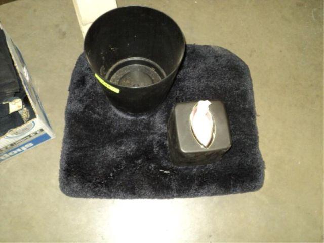 2 BATHROOM RUGS, WASTE BASKET, KLEENEX HOLDER