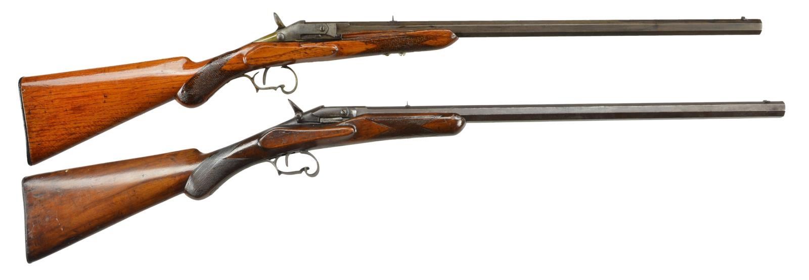 BOTH: 22 RF (22 CB Cap). Warnant Actions. UNATTACHED ACCESSORIES: copy of "The Flobert Gun" by Joseph T. Vorisek & 2 containers (300 rds.) of RWS 6mm/.22 CB Cap.