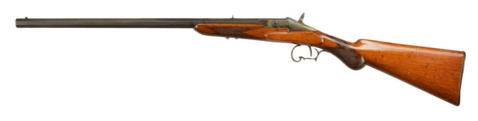 2) S# 673. Bbl. 24 3/8" oct. w/ fixed sights. Walnut rnd. knob pistol grip stock w/ checkering & checkered buttplate. CONDITION: fair brown patina metal w/ marks & oxidation. Fair stock w/ added varnish overall marks & sm. cracks. Poor bore. (22-2074/MD). BOTH CURIO. $400-600.