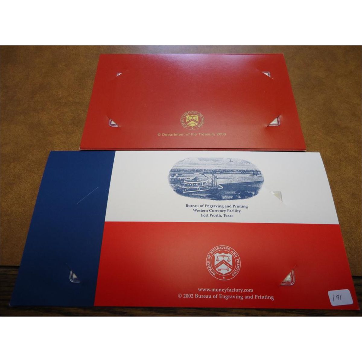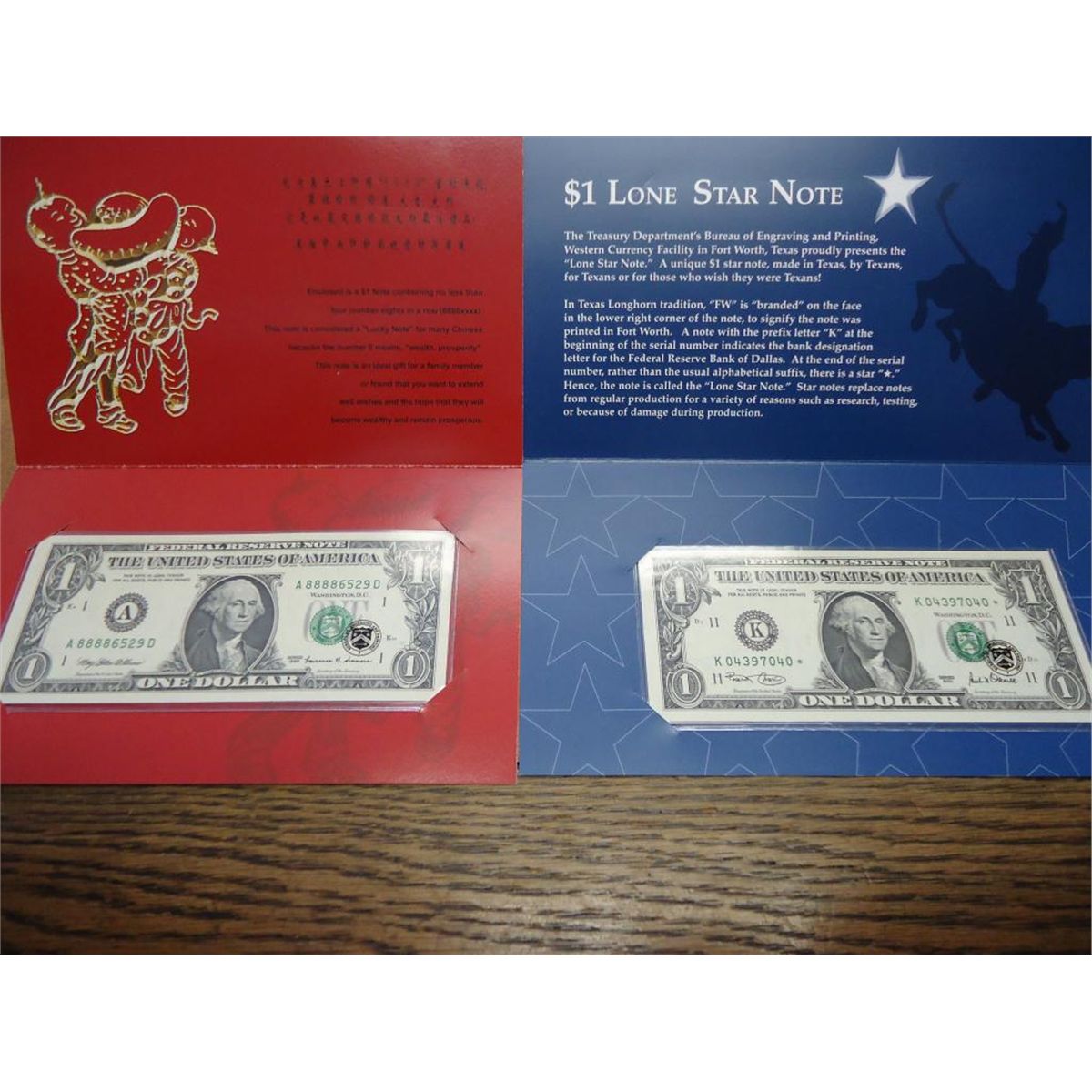 8888 AND 2001 $1 TEXAS LONE STAR NOTE, BOTH CU, ORIGINAL BEP PACKAGING