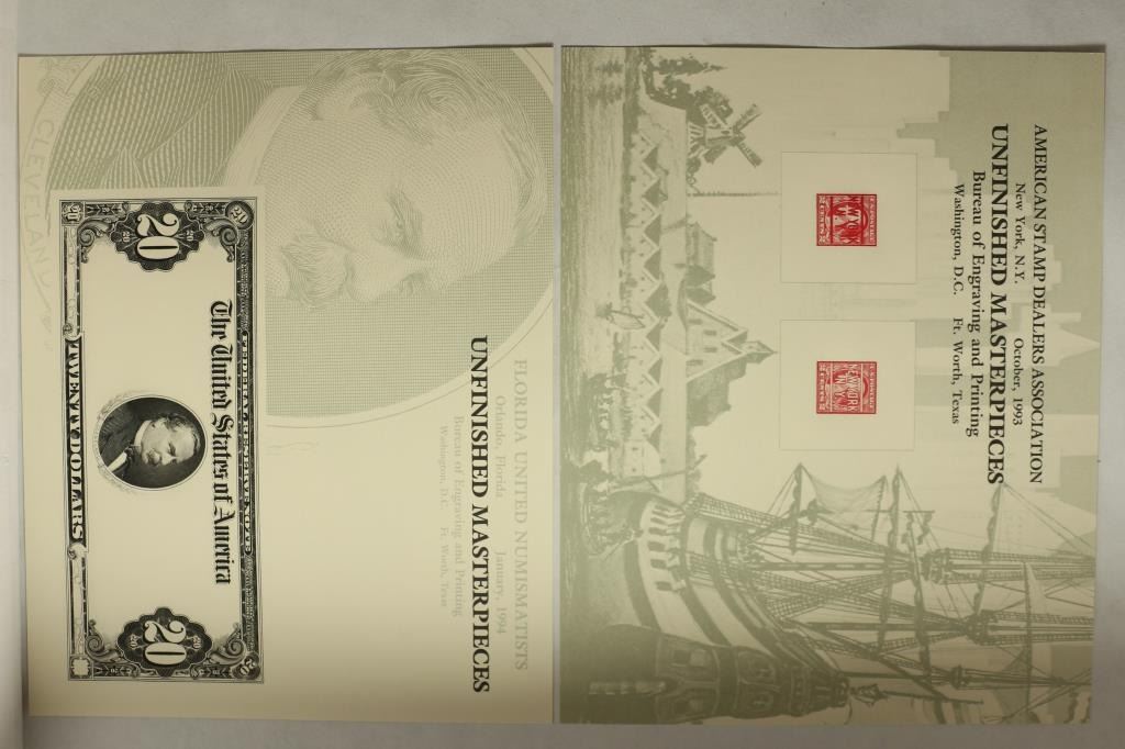 NUMISMATISTS, UNFINISHED MASTERPIECES AND 1993 AMERICAN STAMP DEALERS ASSOC. UNFINISHED MASTERPIECES.
