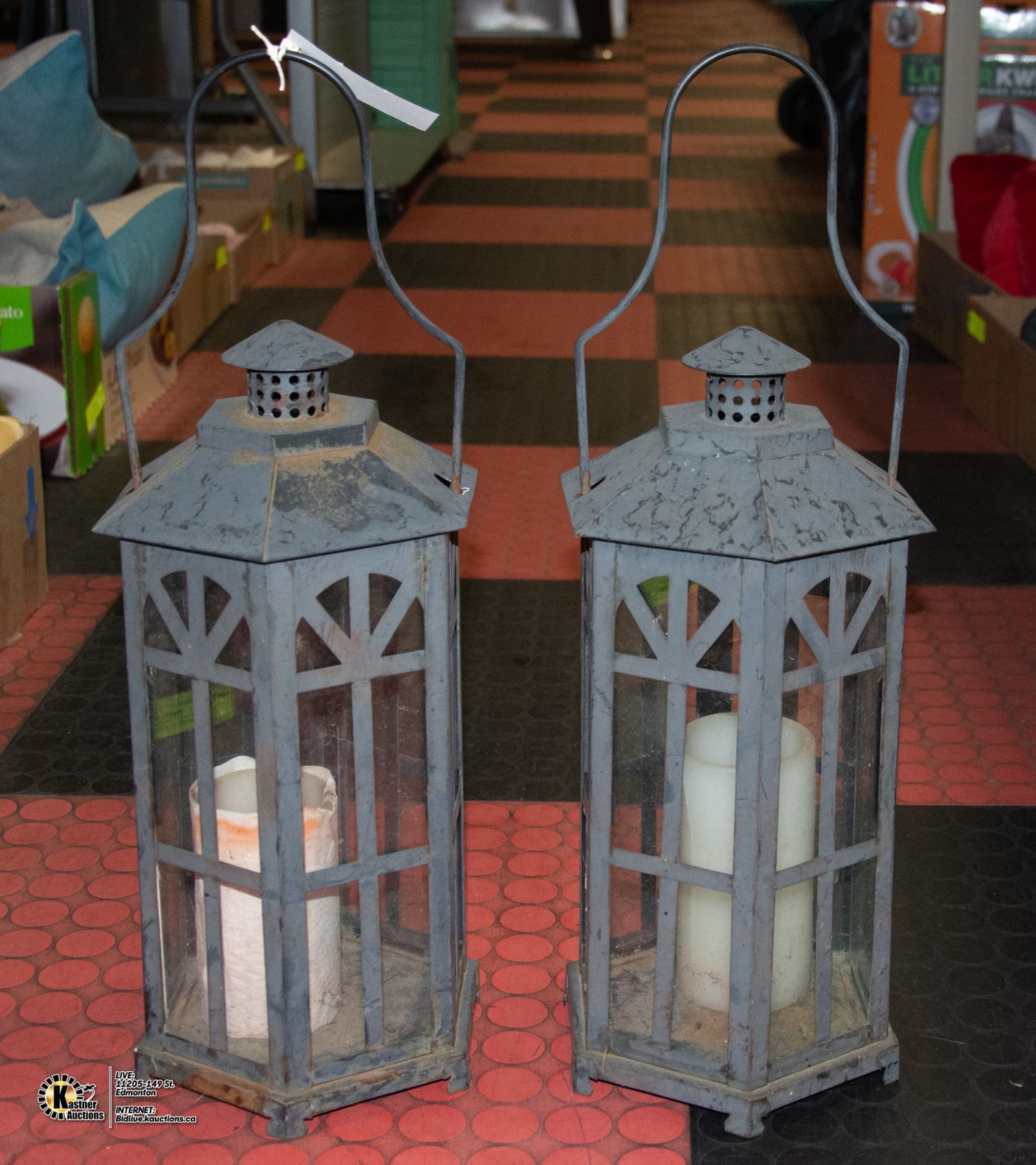 2 BLACK LANTERNS WITH CANDLES 21" TALL