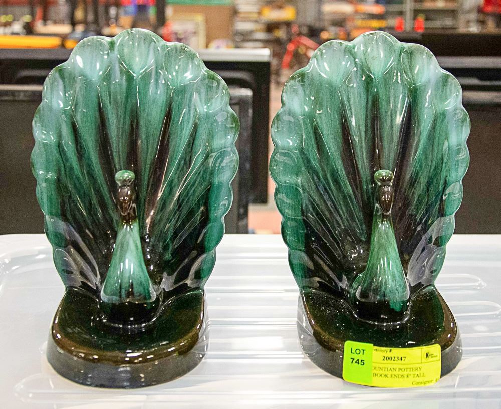 2 BLUE MOUNTIAN POTTERY PEACOCK BOOK ENDS 8" TALL