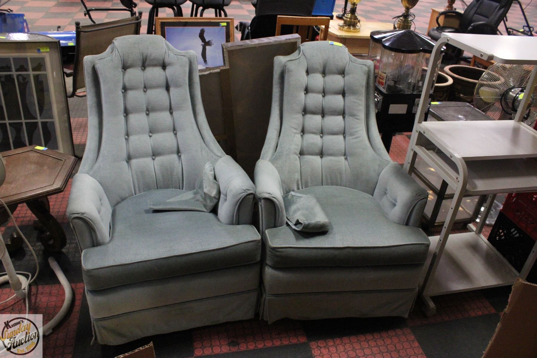 2 BLUE SWIVEL TEAL FABRIC ARM CHAIRS
