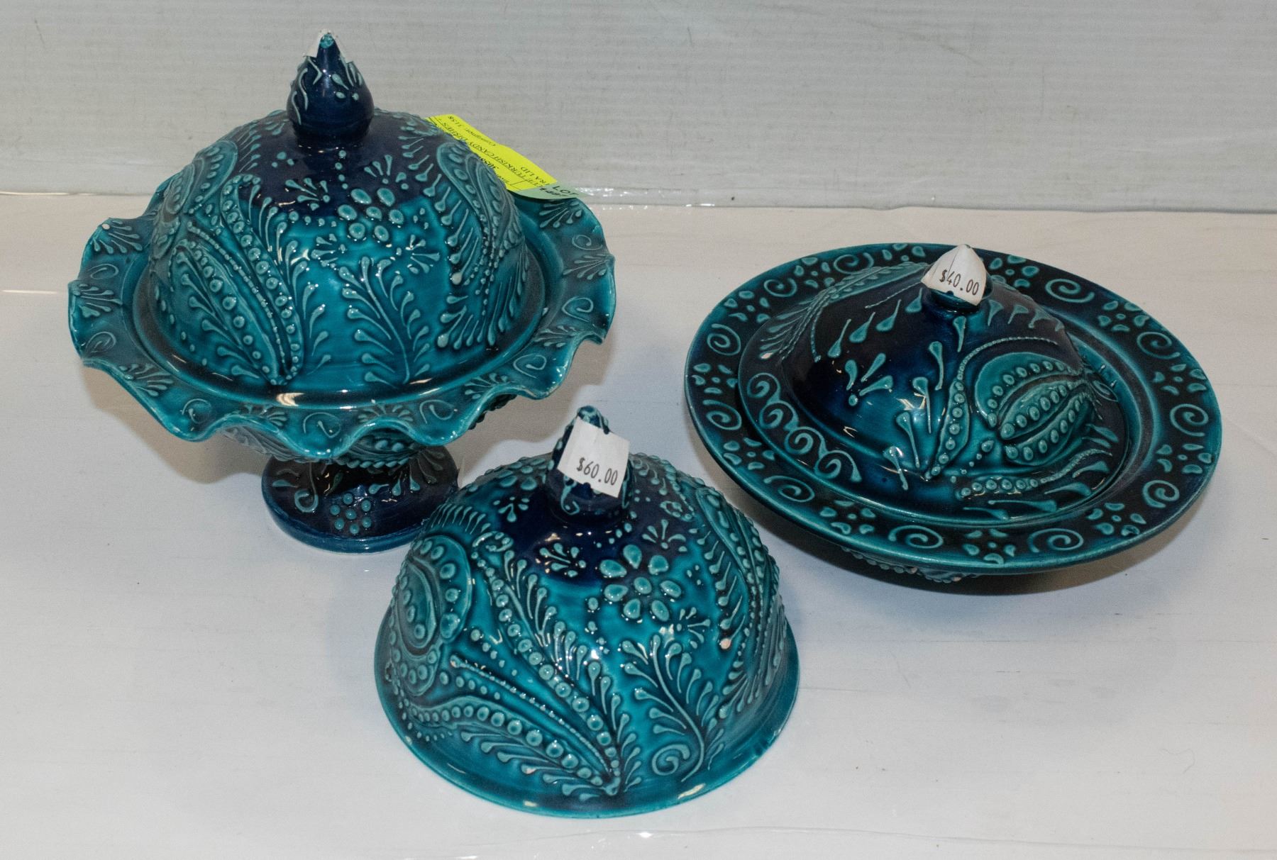 2 BLUE TURKISH CANDY DISHES + EXTRA LID
