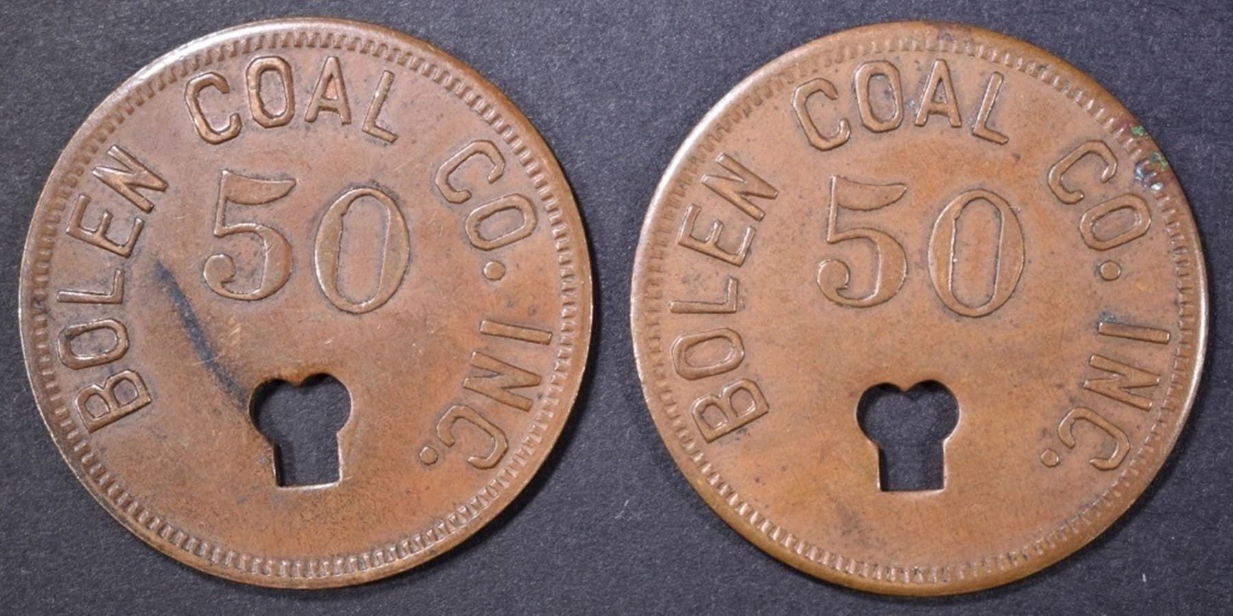 2-BOLEN COAL Co GOOD FOR 50 TOKENS, DAYTON OH