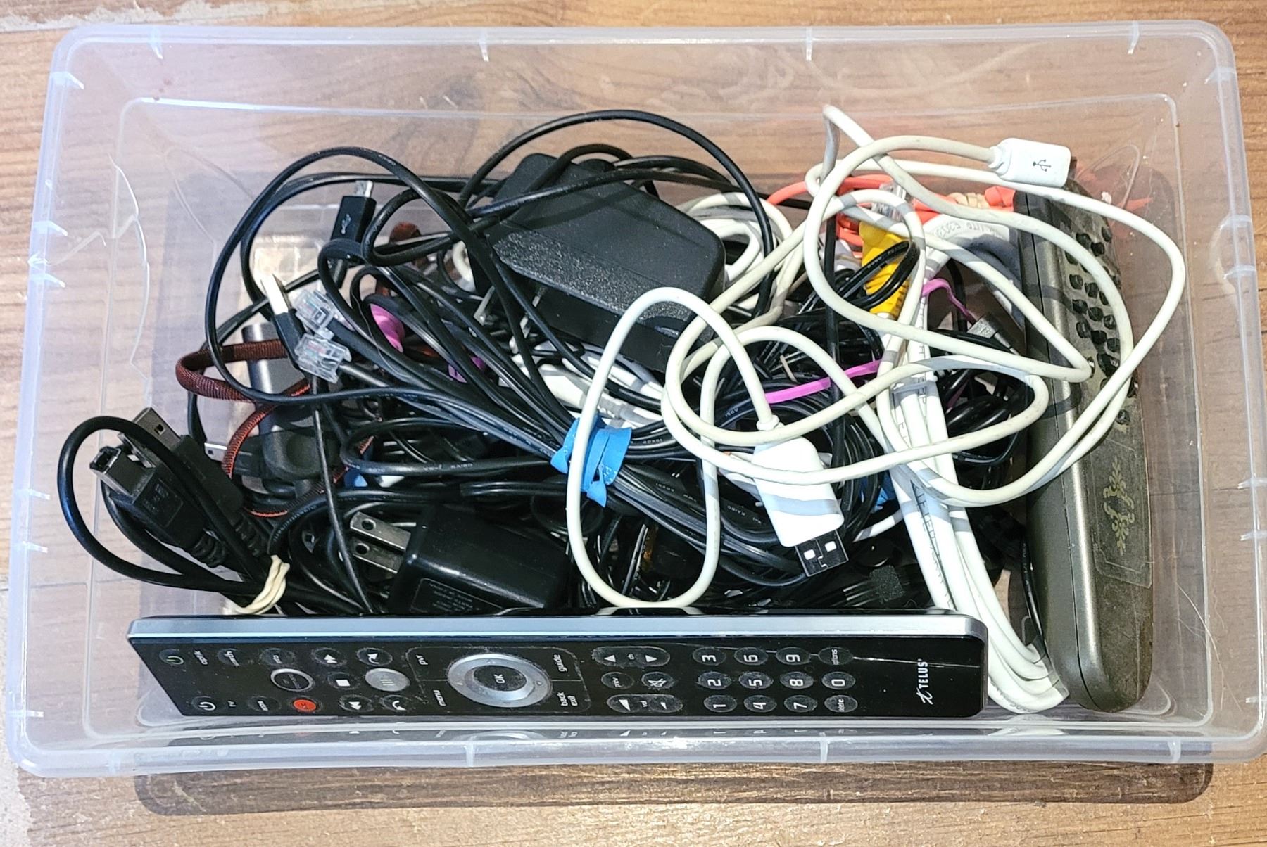 2) BOX OF ASSORTED CORDS, POWER SUPPLIES AND