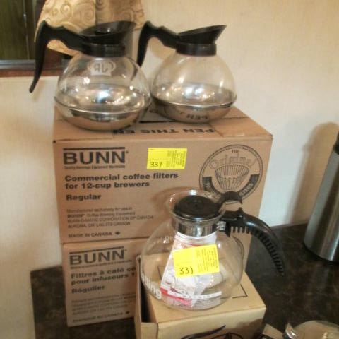 2 BOXES BUNN COFFEE FILTERS & 4 CARAFES