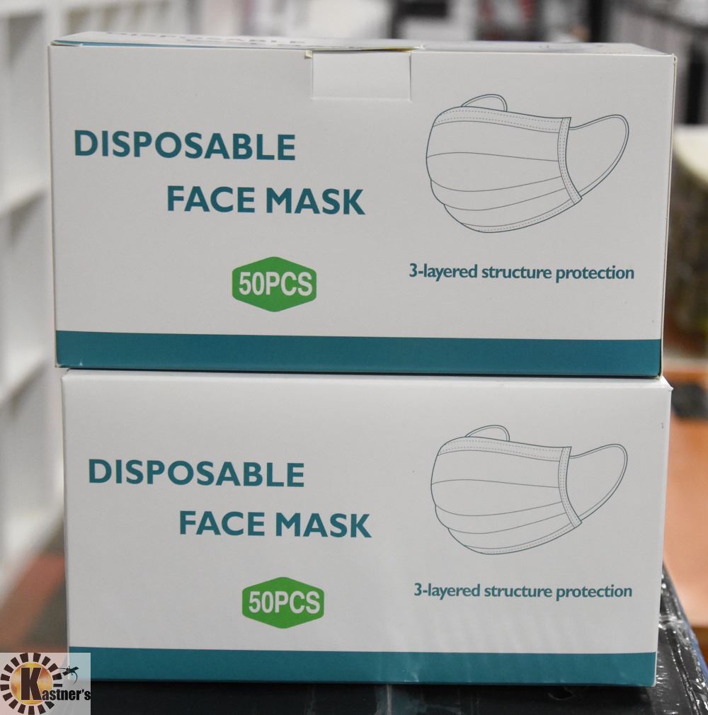 2 BOXES OF 50 (100 TOTAL) DISPOSABLE FACE MASKS