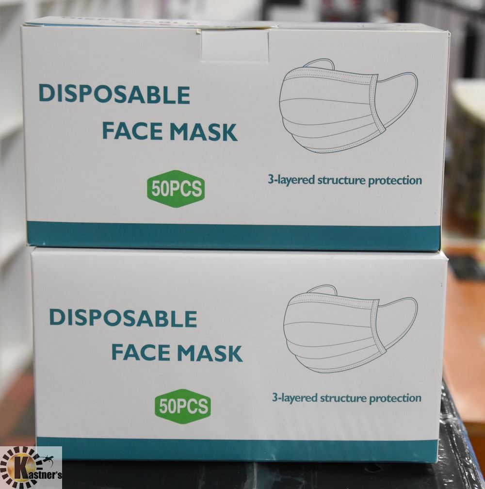 2 BOXES OF 50 (100 TOTAL) DISPOSABLE FACE MASKS