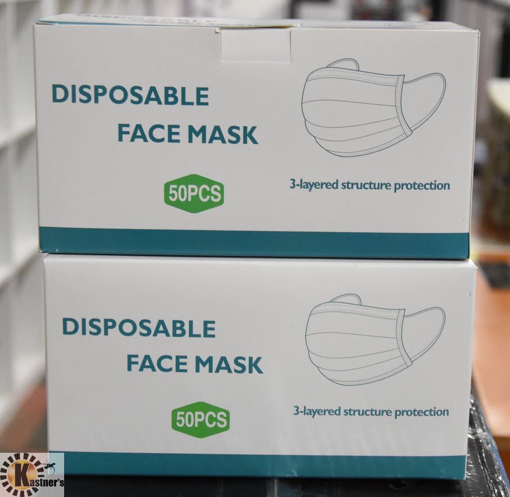 2 BOXES OF 50 (100 TOTAL) DISPOSABLE FACE MASKS