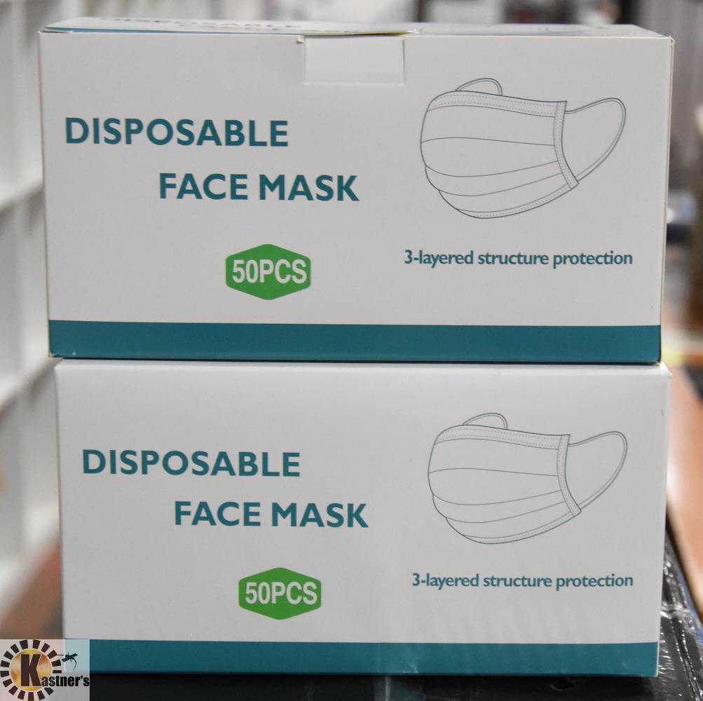 2 BOXES OF 50 (100 TOTAL) DISPOSABLE FACE MASKS