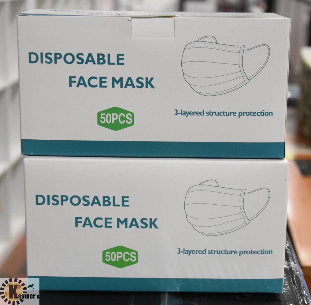 2 BOXES OF 50 (100 TOTAL) DISPOSABLE FACE MASKS