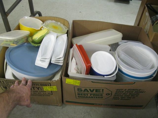 2 BOXES OF ASST. PLASTICWARE, ETC.