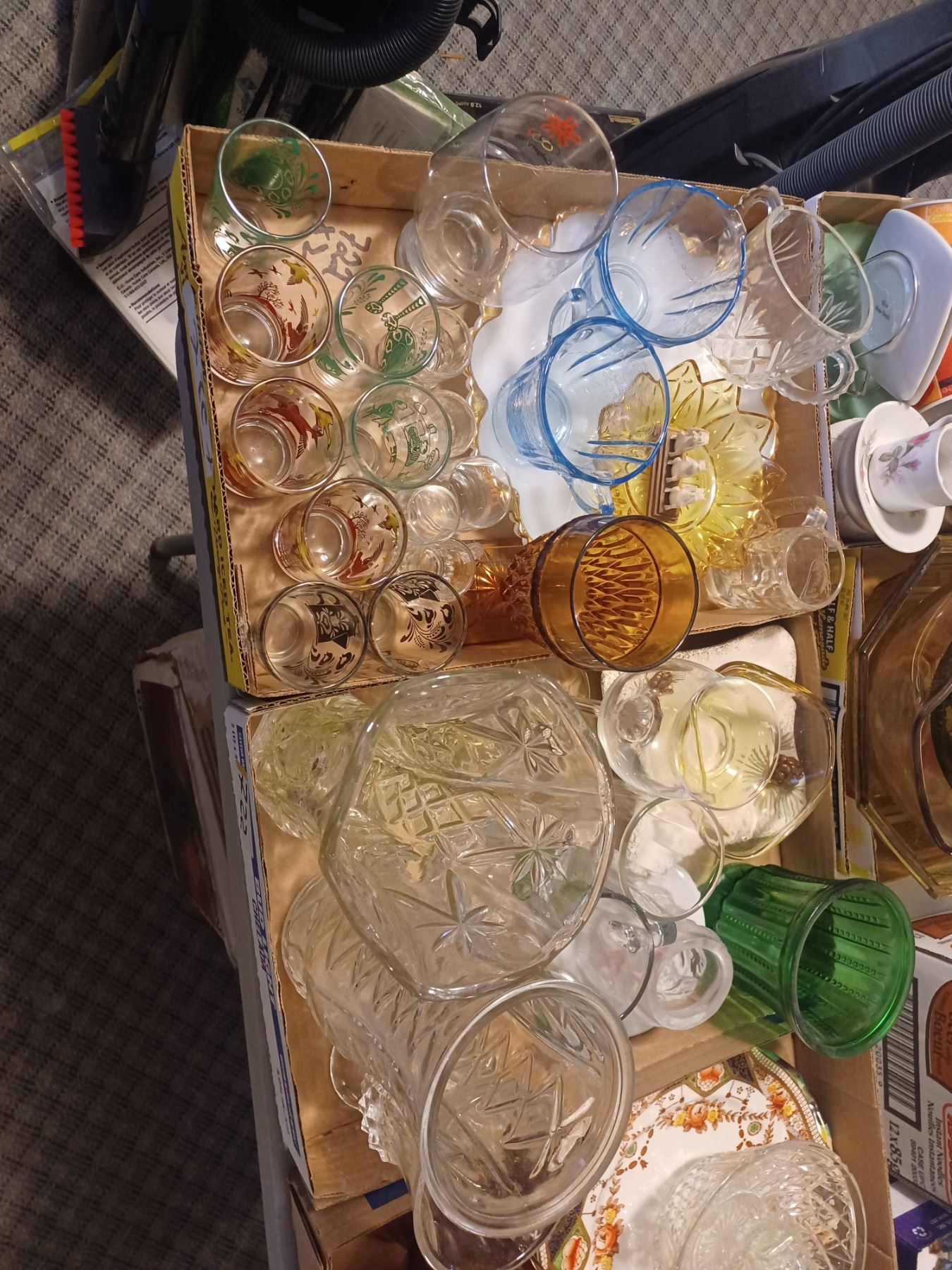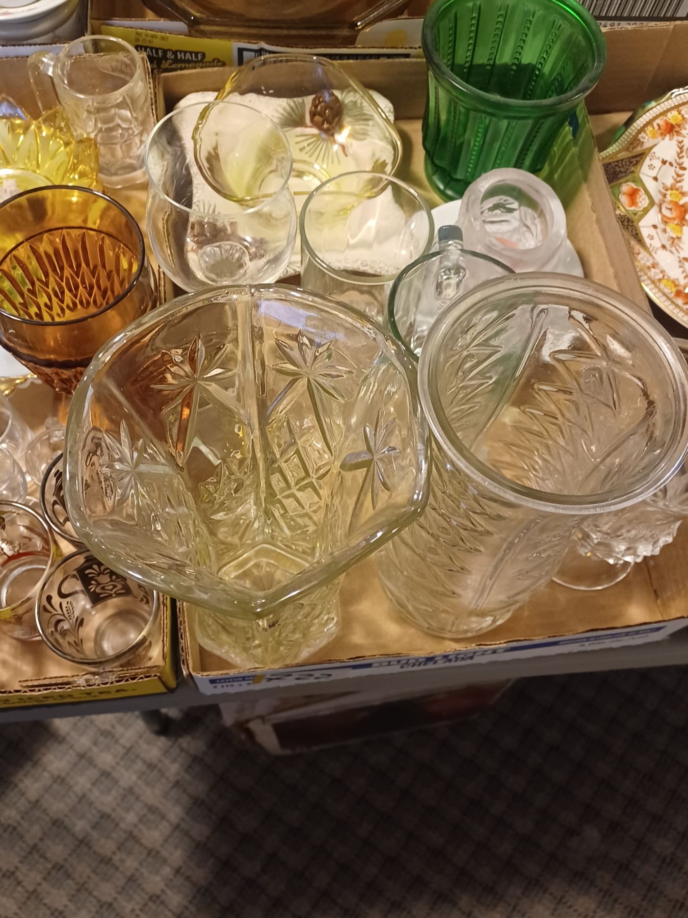 2 BOXES OF GLASSWARE SOME VINTAGE PIECES