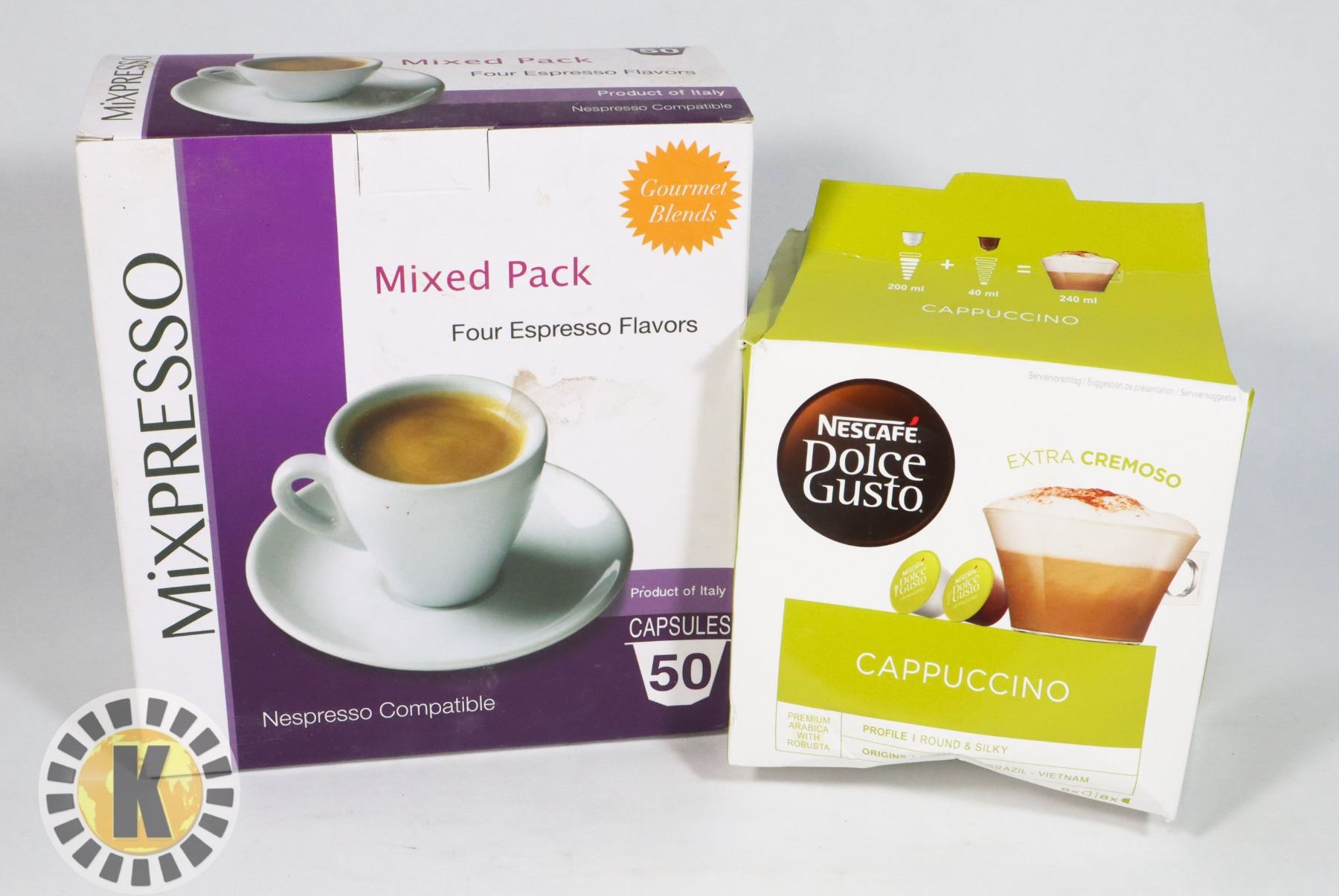 NESCAFE DOLCE GUSTO CAPPUCCINO MAKES 8 SERVINGS MIXPRESSO FOUR ESPRESSO FLAVORS 50 CAPSULES***ITEM(S) LOCATED IN LETHBRIDGE ALBERTA. TRANSPORT TO EDMONTON SERVICE WILL BE REDUCED / CANCELED UNTIL FURTHER NOTICE, CANADA POST SHIPPING IS AVAILABLE. WE CAN HOLD JEWELRY, CURRENCY, COMIC BOOK, VIDEO GAME PURCHASES UNTIL A TRANSPORT VEHICLE IS AVAILABLE ( EXPECT A MINIMUM 3 WEEK WAIT FOR THE FREE TRANSPORT). WE ARE UNABLE TO HOLD LARGER ITEMS.