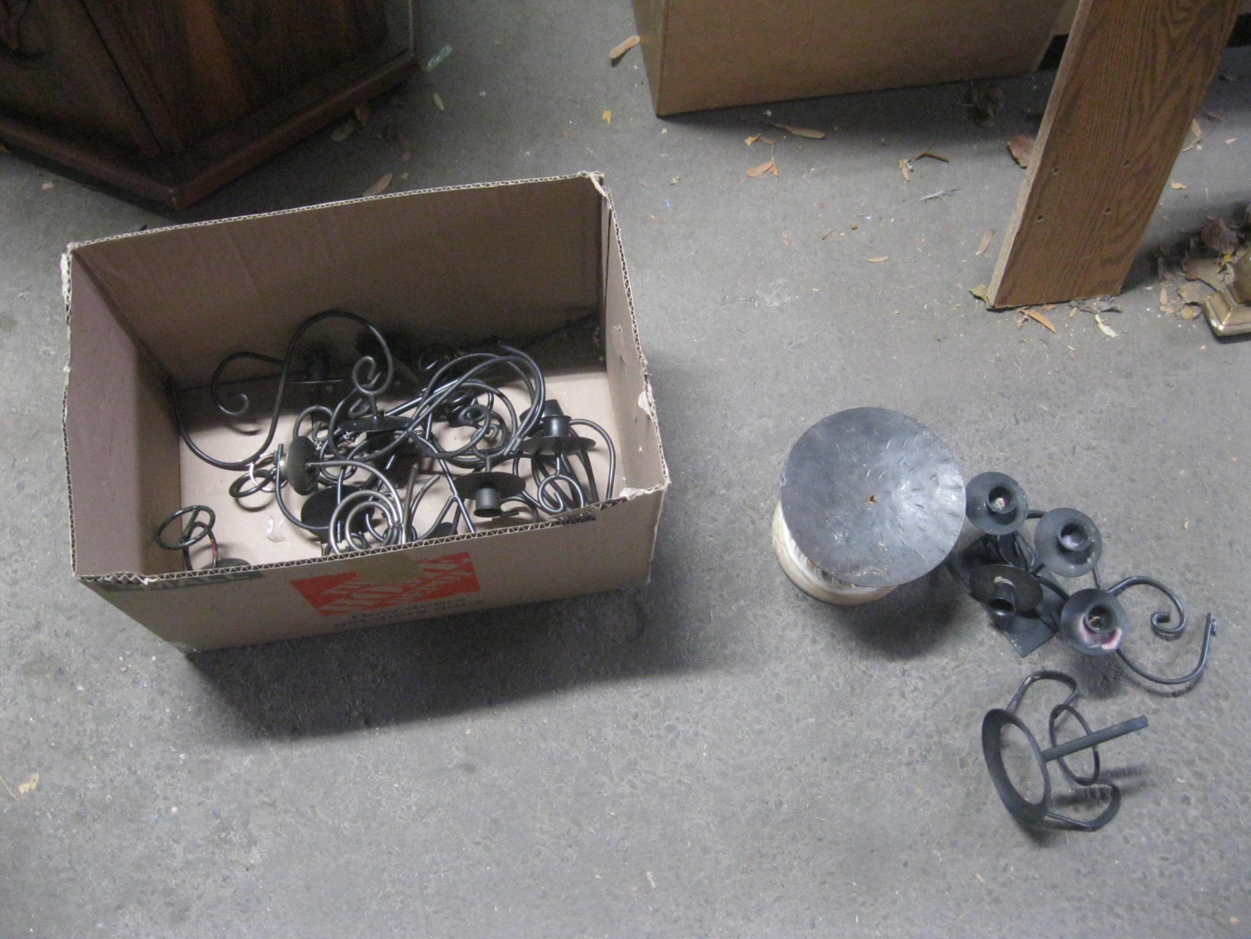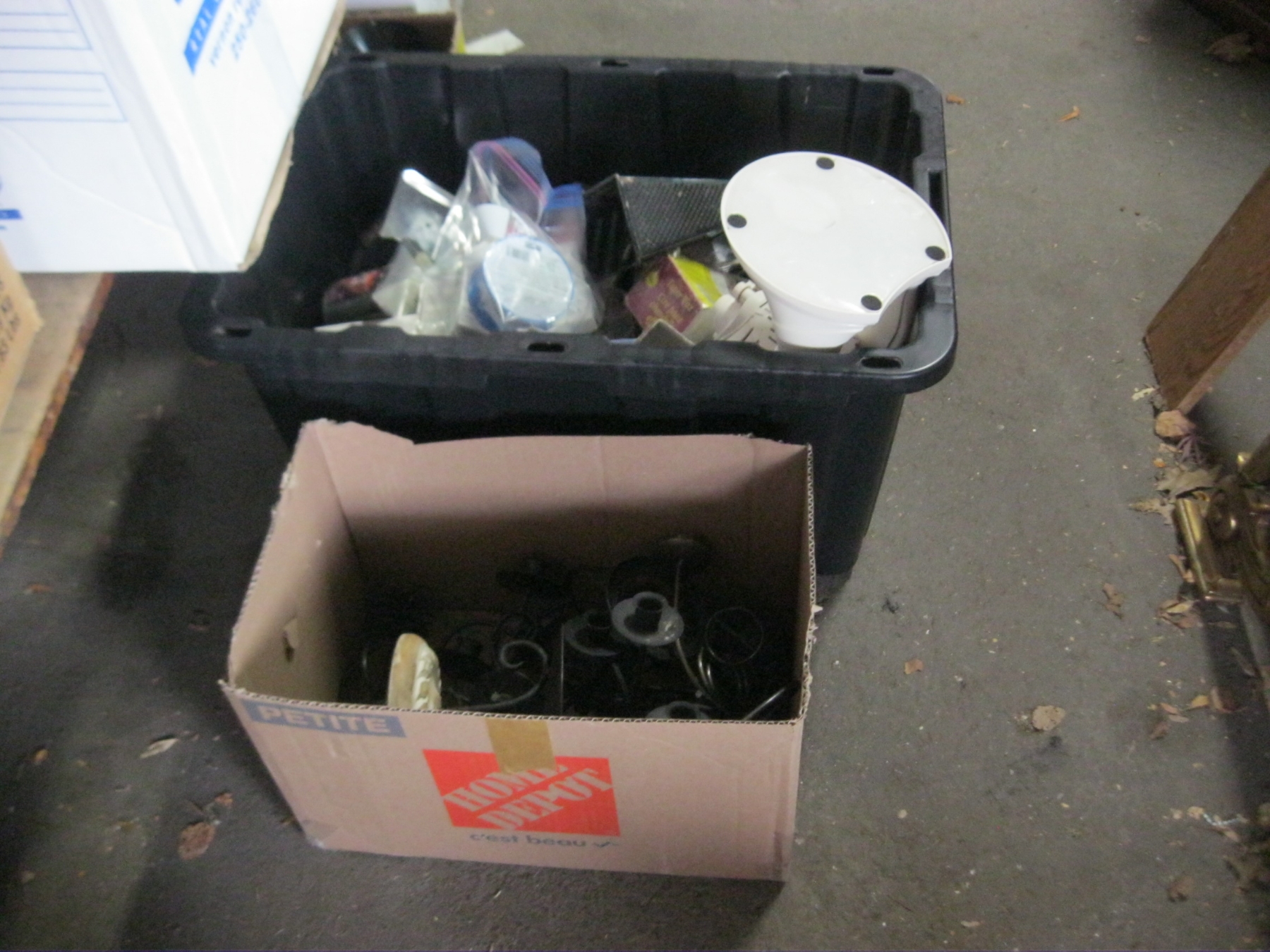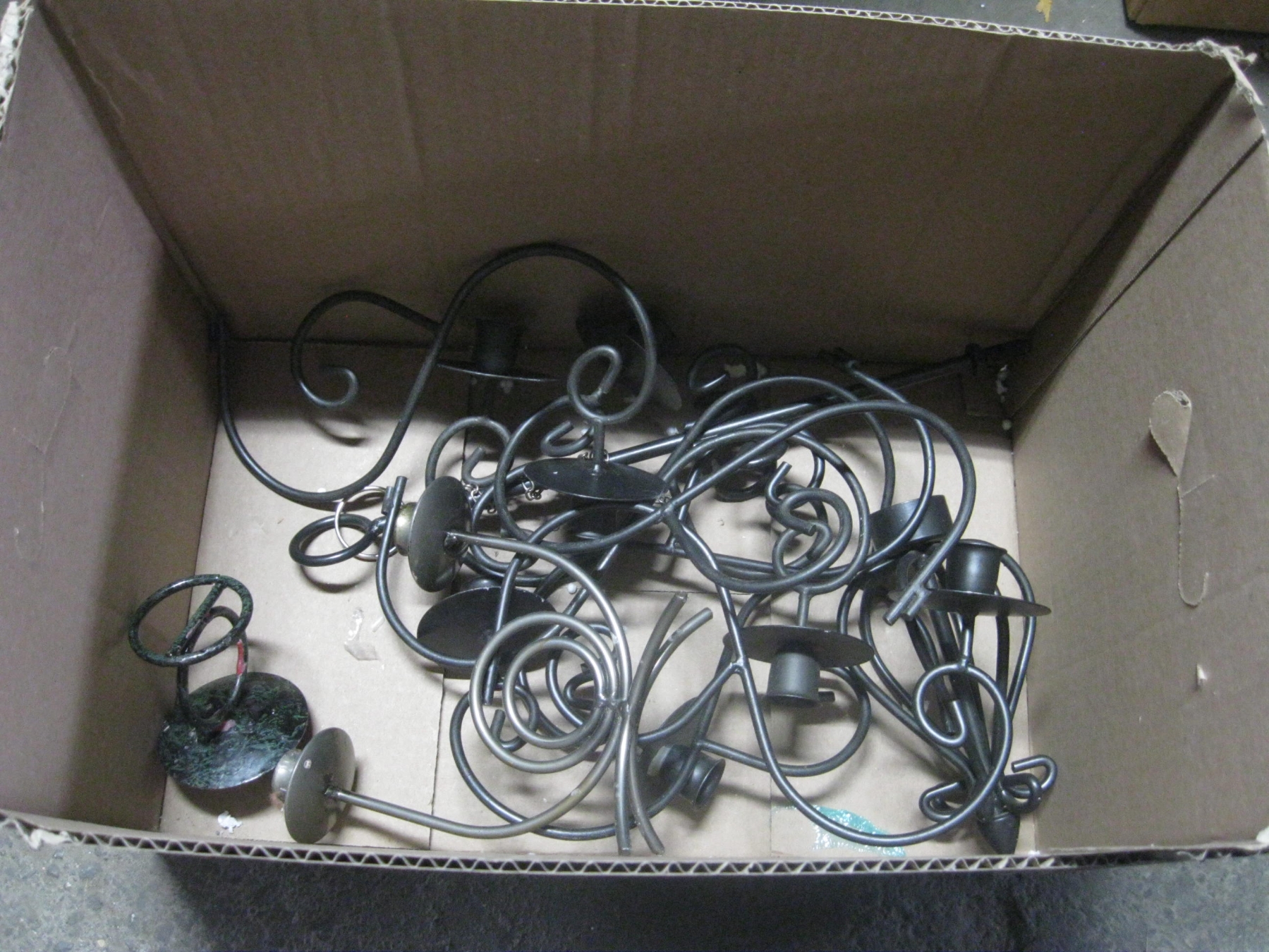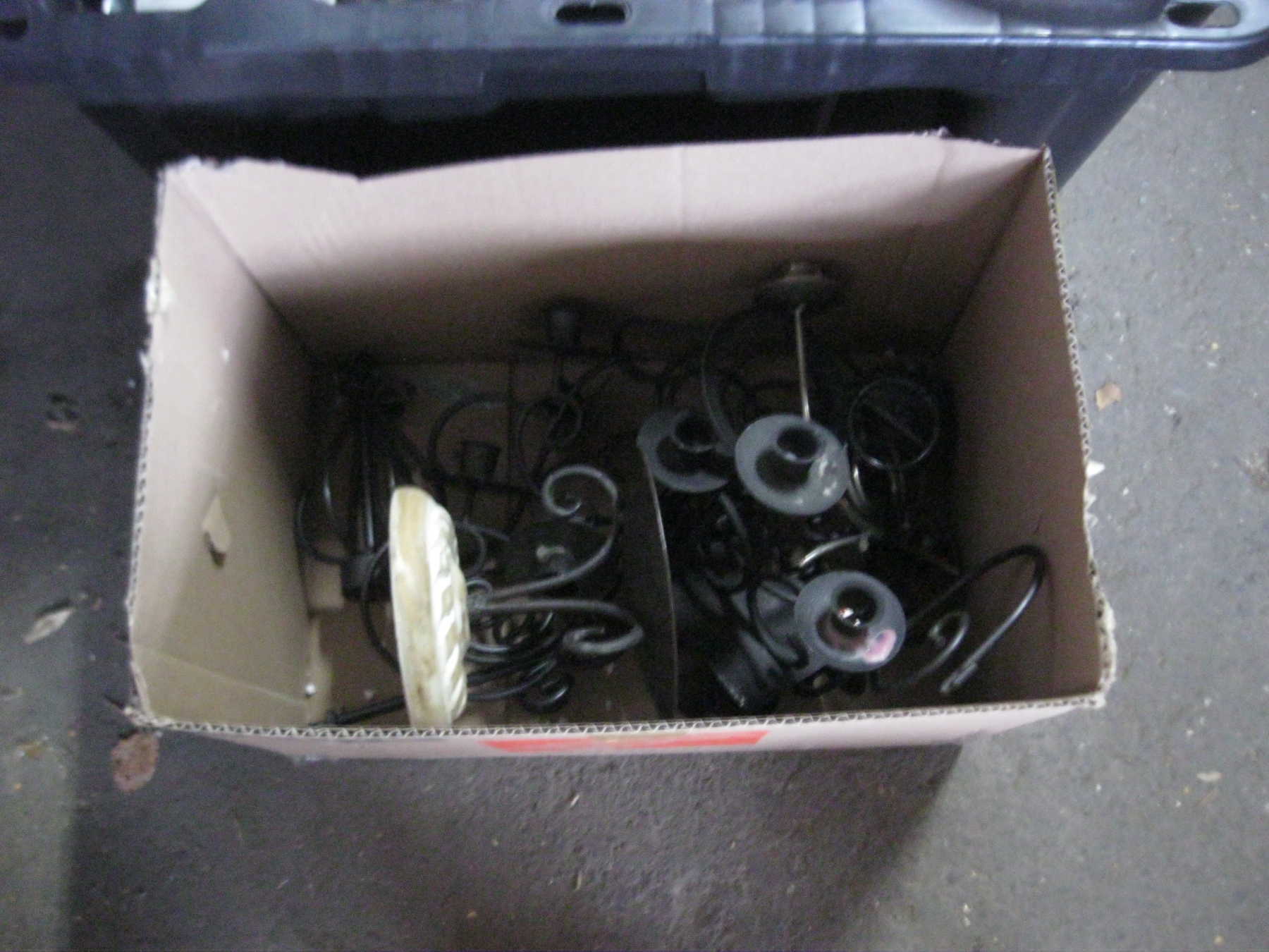 2 BOXES OF MISC. LIGHT FIXTURES, CANDLE HOLDERS, SUN LAMP, WAX, ETC.
