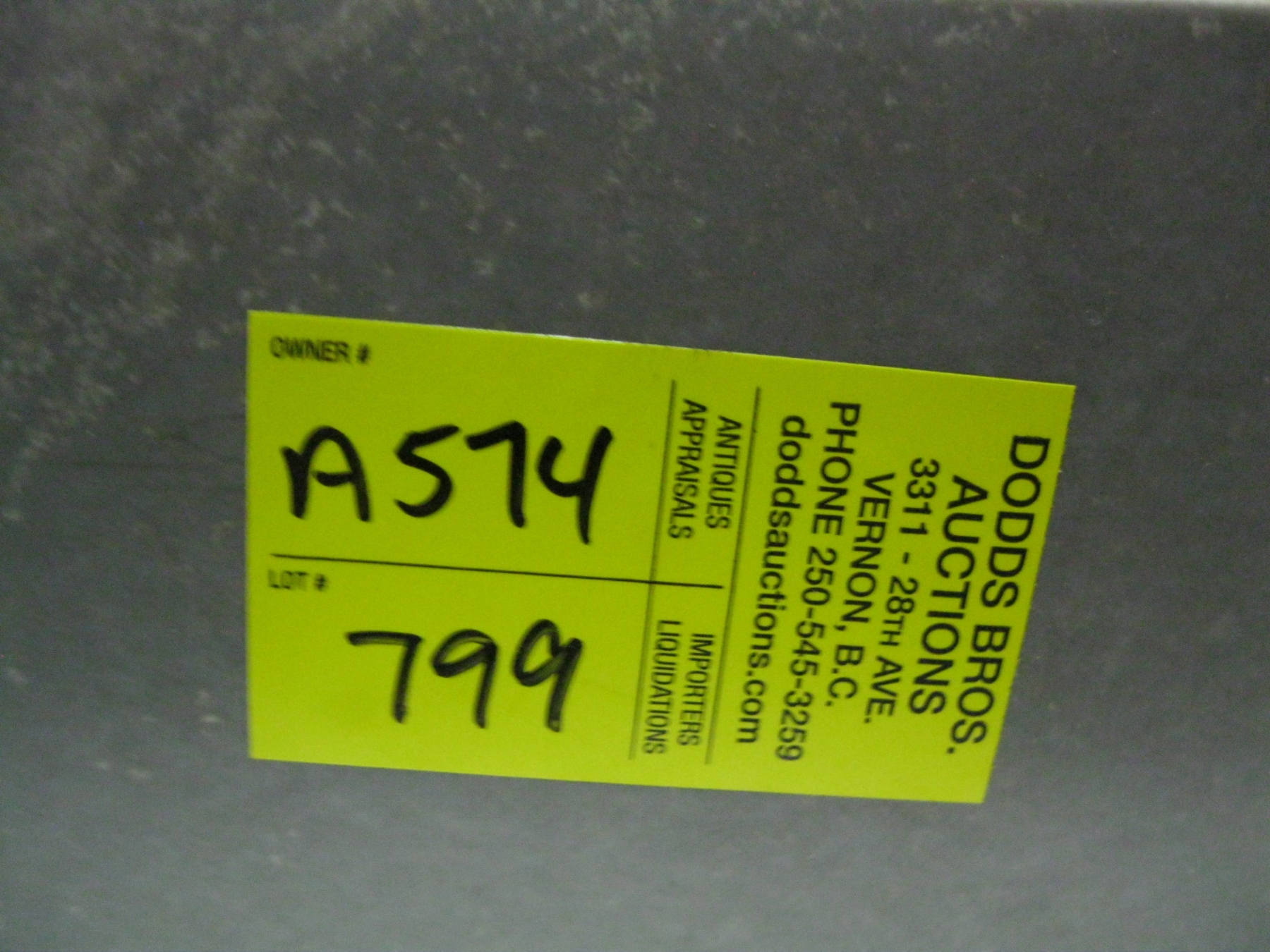 Attendance at the auction preview, or removal of purchased lots by purchaser/bidders and guests is done at their sole risk. Dodds Auction assumes no risk or liability, statutory, common law or otherwise whatsoever for the safety of those attending at the auction premises.