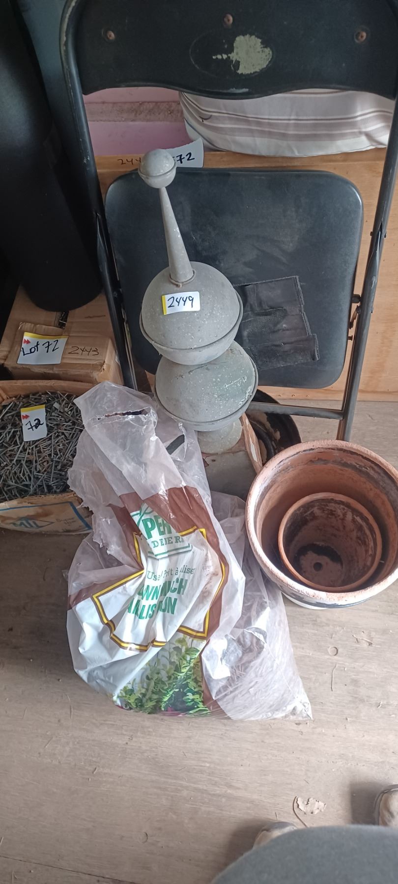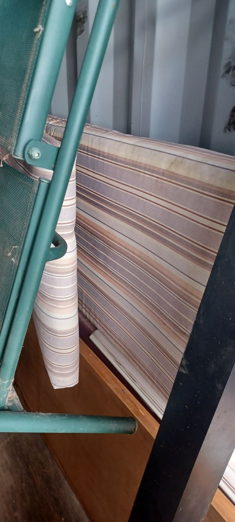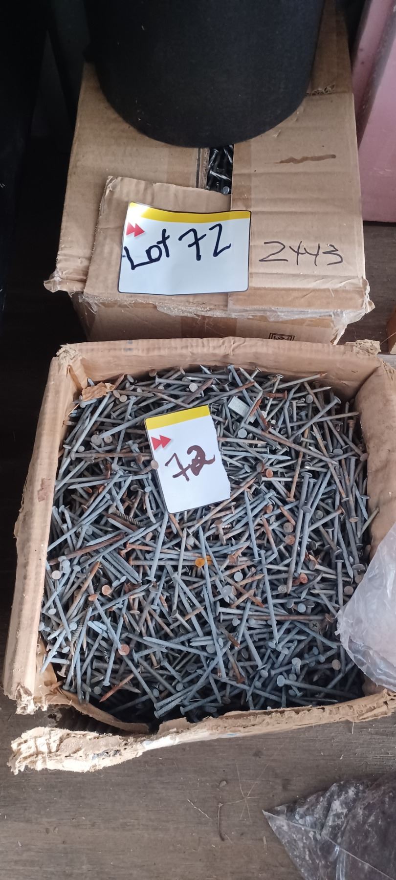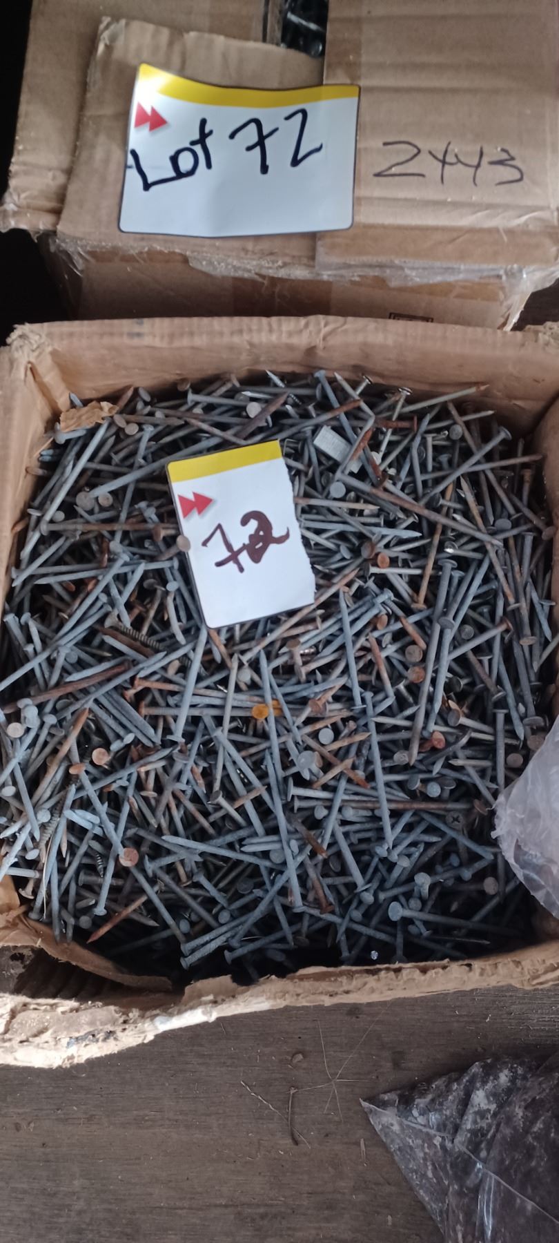 2 BOXES OF NAILS, WOOD DOOR, LAWN CHAIR C/W CUSHIONS, WINDOW BLIND