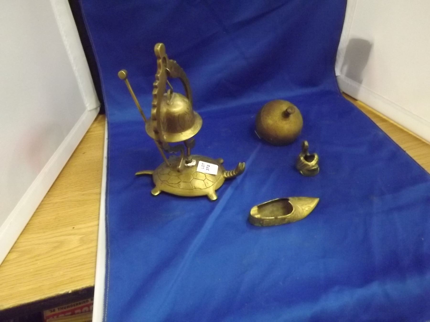 2 BRASS SERVICE BELLS AND BRASS PERSONAL ASHTRAYS