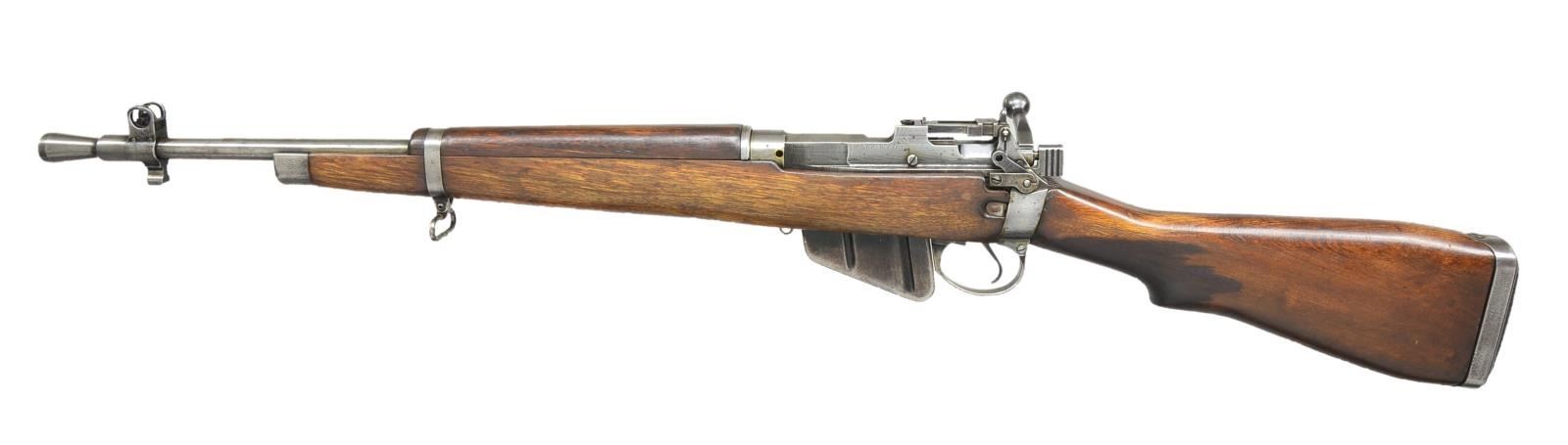 1) SAVAGE NO. 4 MKI. Cal. 303 Brit. S# OC2269. Bbl. 25". Import marked on lower left butt socket. Rifle marked on top left of receiver "U.S. PROPERTY". Left side of the receiver has a flaming bomb, "S" & NO. $ MKI*". U.S. Property mark stamped on these rifles supplied to Britain for lend lease purposes. Aperture MKIII rear sight graduated to 1300yds. Blade front sight w/ protective ears. Hardwood stock set. Buttstock marked "S" for short. Brass trap buttplate. MAGS: 1 detachable 10 rd. CONDITION: wood has lg. degree of original finish w/ staining, light wear & scattered handling marks. Metal has 80% arsenal rework black finish w/ light wear & scattered scratches. 2 Groove bore w/ sharp lands turning dark. (21-2782/RW).