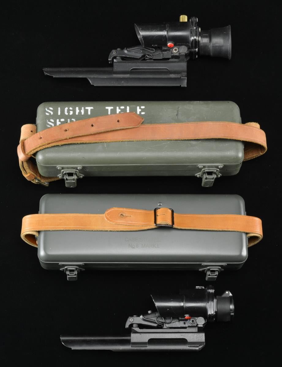 4) Repro. Case for No. 8 MK I scope w/ cardboard box. CONDITION: Repro in near excellent condition. Balance in good overall condition w/ wear. Optics appears clear & serviceable. (02-16811-4/MD). $150-300.