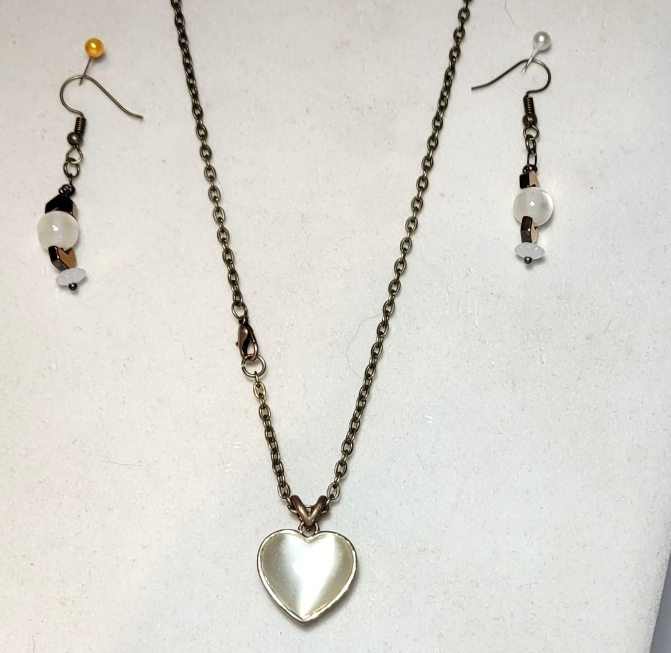 AND WHITE CAT'S EYE DROP EARRINGS. JEWELLERY