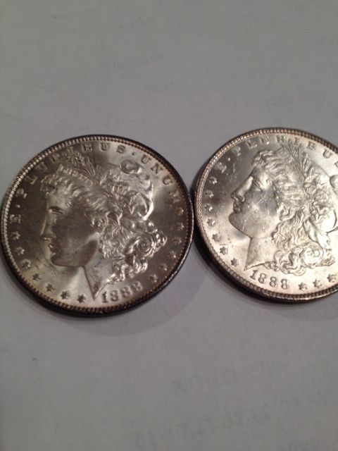 2 BU 1888 MORGAN SILVER DOLLARS, MS