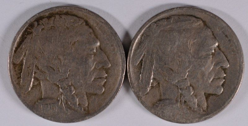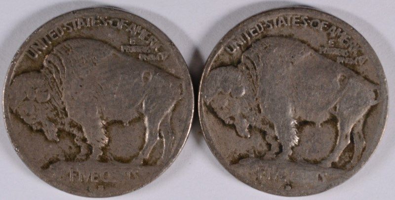2- BUFFALO NICKELS, 1913 D & S TYPE 1, VG