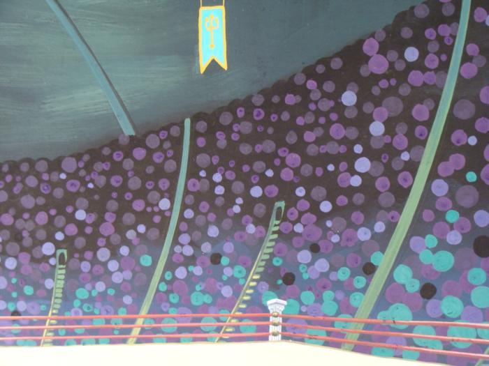 These original hand-painted backgrounds are from the Nickelodeon TV show SpongeBob Squarepants. The story takes place under the deep blue sea in Bikini Bottom, where SpongeBob resides. SpongeBob, who is a yellow, porous sponge, is your typical happy-go-lucky character, as he is always cheerful and enjoys making people laugh. Patrick Star, SpongeBob's neighbor who is a starfish, is your average children's show idiot, as he boasts knowing nothing and is often getting himself into ridiculous situations. Between the homes of these two lies the home of the miserable Squidward, a squid, who is known for being grouchy and playing tricks on SpongeBob and Patrick. Both SpongeBob and Squidward work at the Krusty Krab, a fast food business run by the greedy money-loving Mr. Krabs, a crab, the arch rival of the evil, possibly misunderstood, Plankton. Another neighbor, Sandy Cheeks, an athletic squirrel who normally wears an astronaut's space suit, was introduced in "Tea at the Treedome." She spends most of her time inventing and experimenting. It looks like a possible "throw-down" is going to occur in these backgrounds; all bets are off.Original Production Background Overall Size of Background: 10 1/2" x 22 1/2" and 13 1/2" x 17 1/4" Very good condition; it has been stored rolledOriginal Production Backgrounds are used in the making of the final version of animated productions. The background establishes the location and the overall good mood of the scenee. Typically, a background layout artist creates a drawing to establish the content of the scene, placement of characters, perspective and camera angle. Based on this drawing, the background artist creates a preliminary painting to confirm all of the scenes details, then the final production background which is used in the filming of the scene. When these backgrounds are individually photographed behind the progression of production cels, and projected at a rapid succession, the images in the foreground appear to move, creating an animated scene. The background is ready to be matted and framed. It is a colored background with the animator's notations at the bottom.