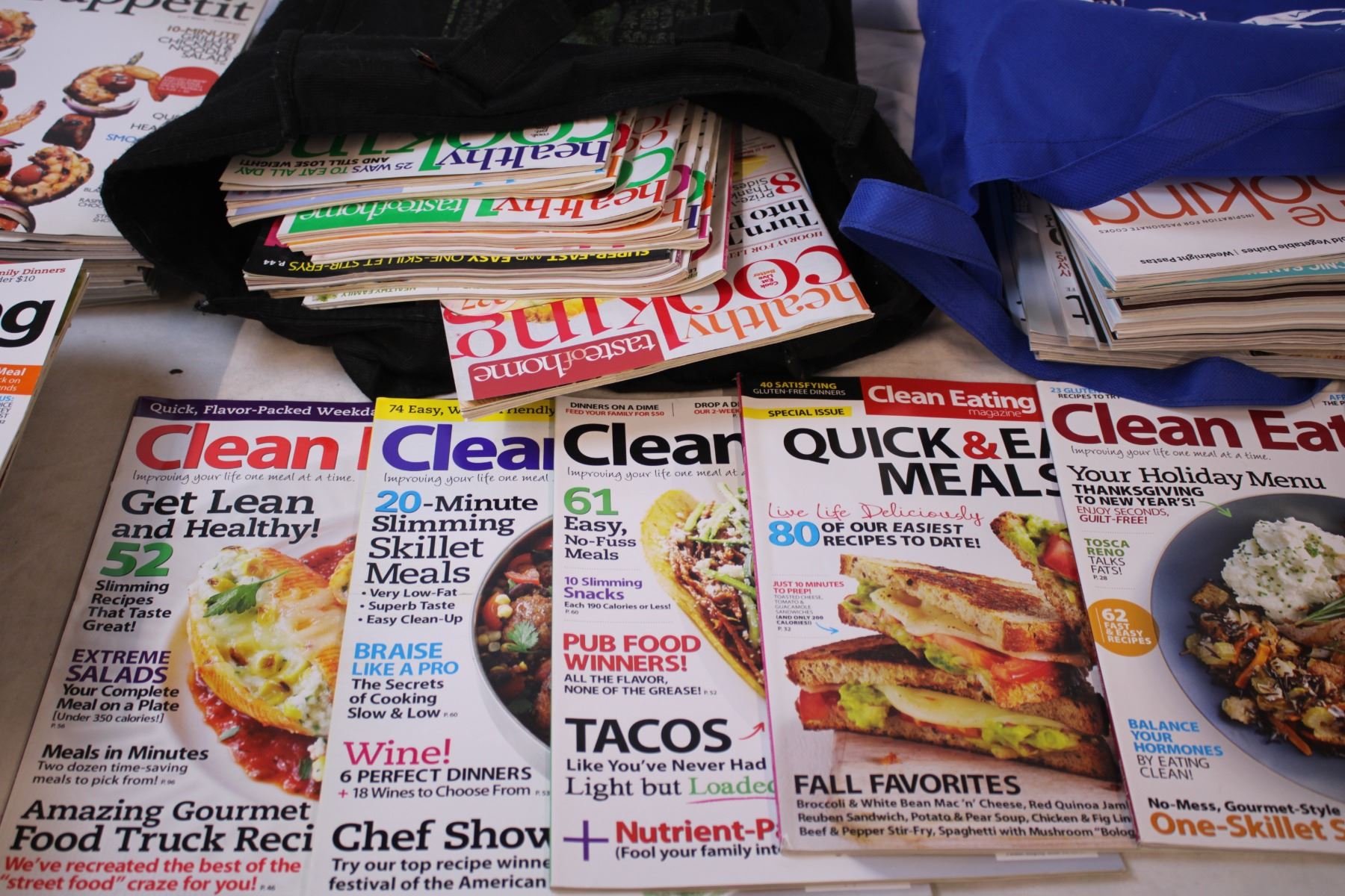 (2) Bags with C;ean Eating + Bon Apetite Magazines