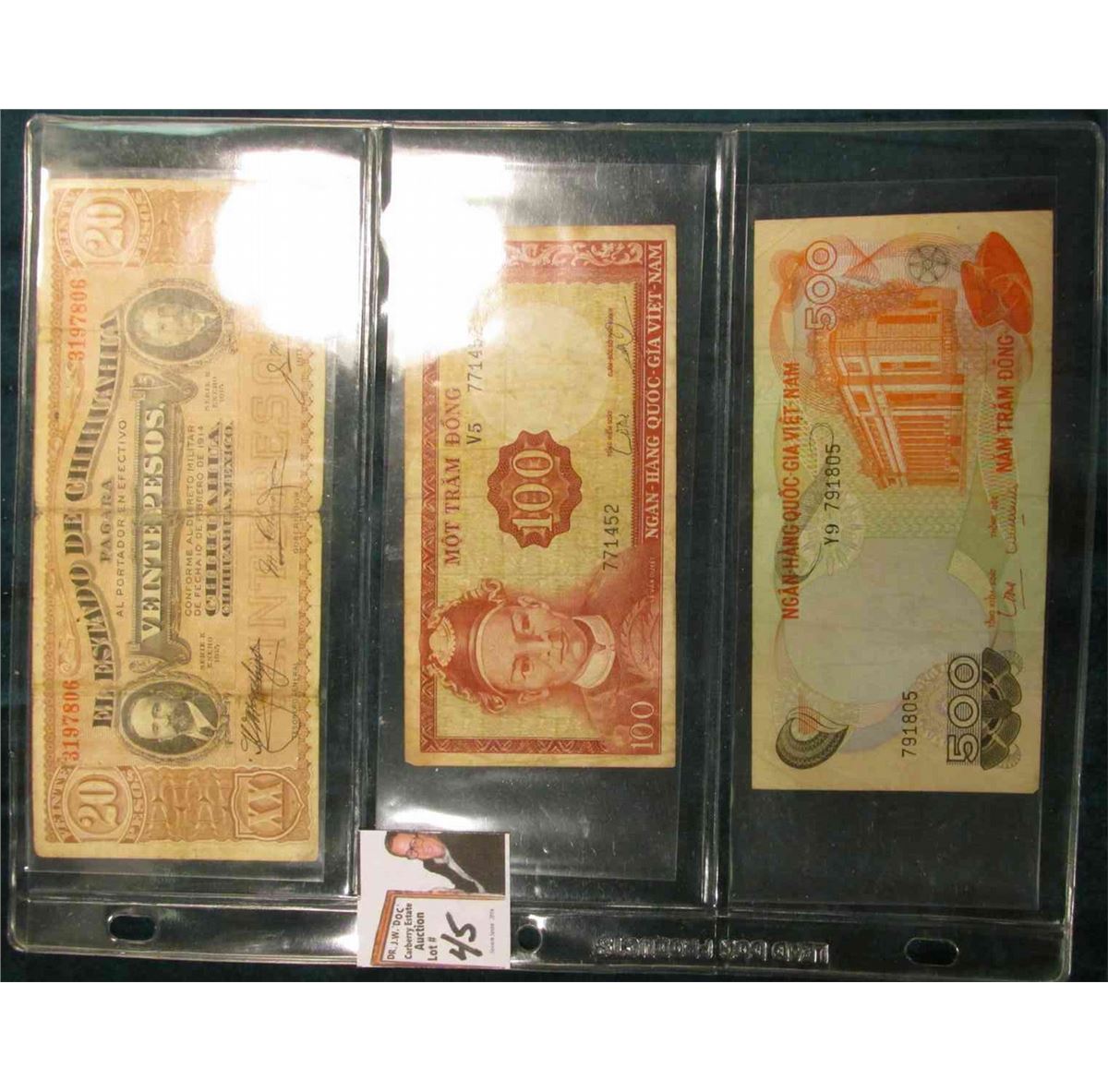 (2) Bank notes from Viet Nam & a 1915 Mexico Revolutionary War.