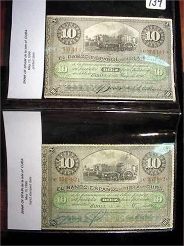 (2) Bank of Spain Isle of Cuba 10 Diez Currency Notes F
