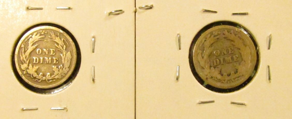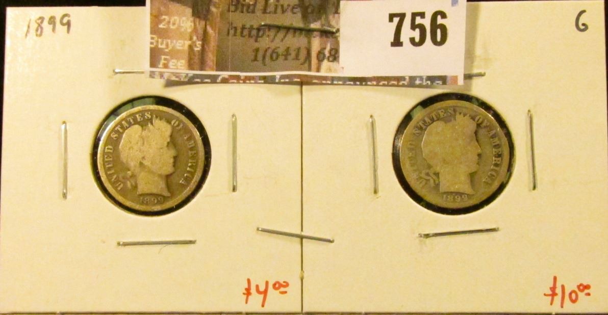 (2) Barber Dimes, 1899 & 1899-O, both G, value for pair $14