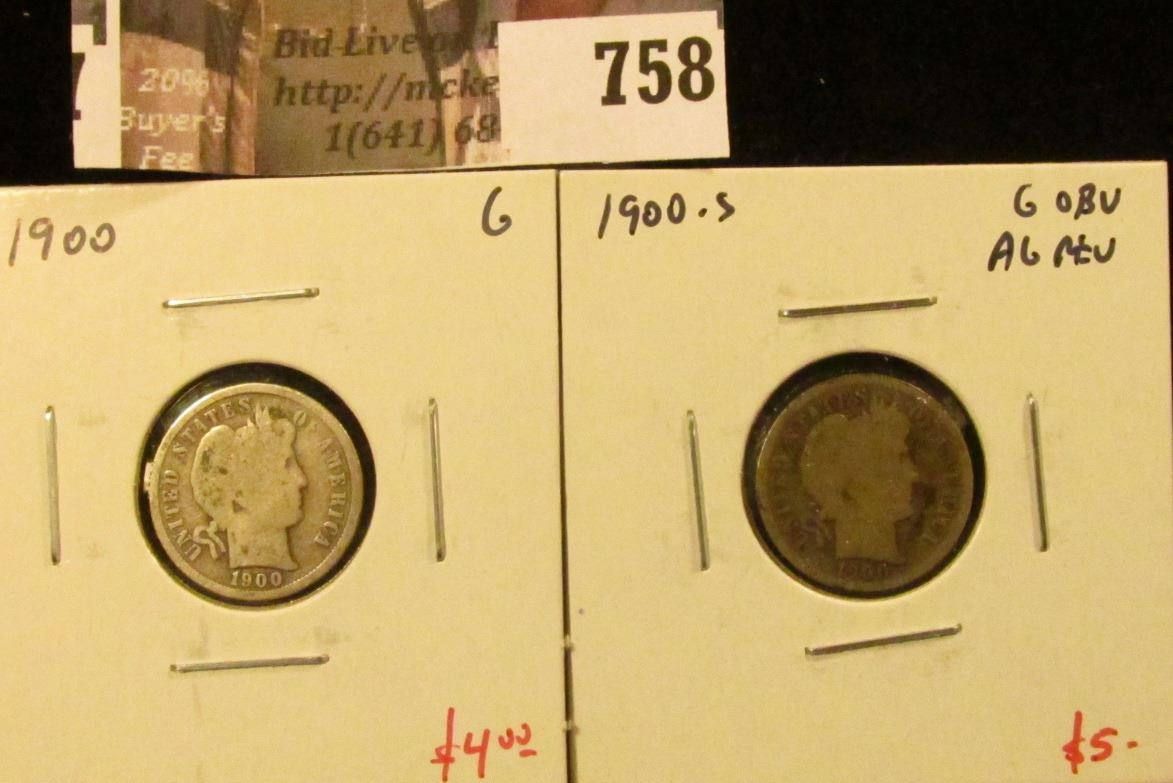 (2) Barber Dimes, 1900 G, 1900-S G obverse, AG reverse, G value for pair $9