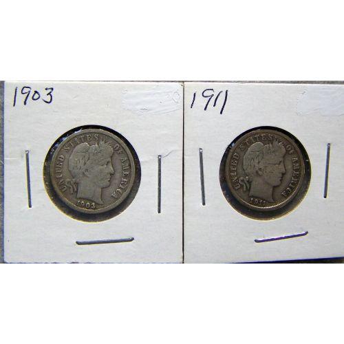 2 Barber Dimes 1903 & 1911