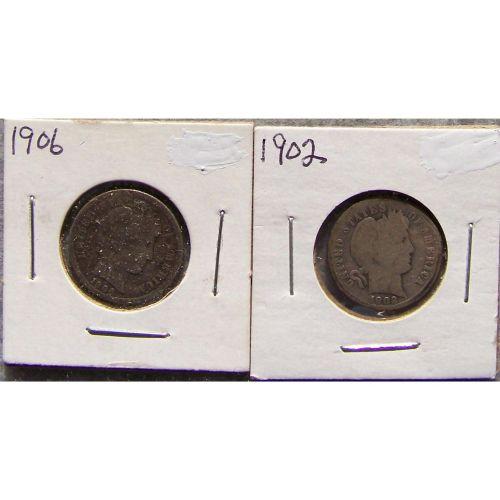 2 Barber Dimes 1906 & 1902