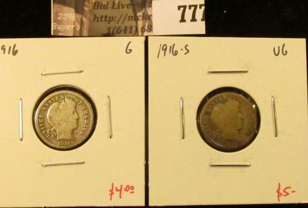 (2) Barber Dimes, 1916 G, 1916-S VG, value for pair $9
