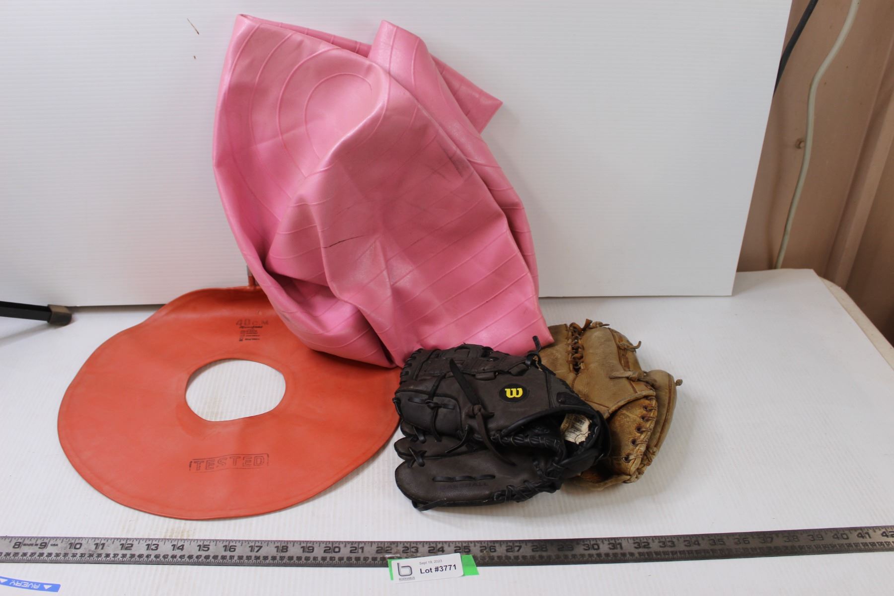 (2) Baseball Gloves, Rubber Ball and Rubber Ring