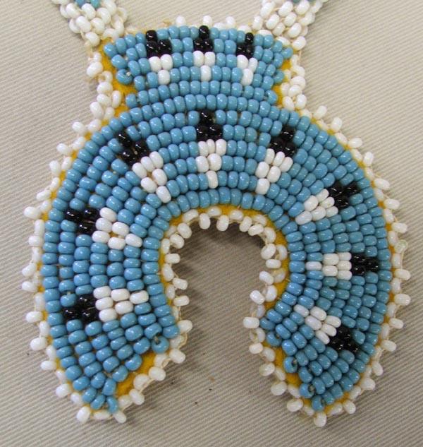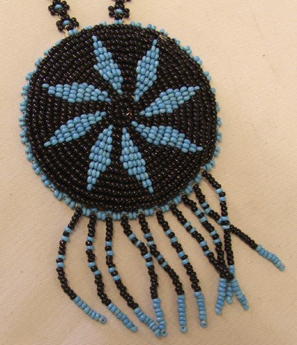 2 Beaded Osage Necklaces, longest necklace measures end to end 26'' and beaded pendant measures approx. 4.5'' with a diameter of 2.75''. SHI $15.