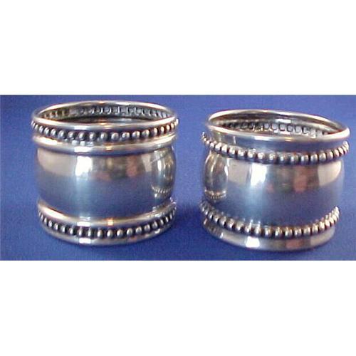 This is a pair of outstanding sterling silver napkin rings by Watson. They are the fat variety, 1.25" tall and 1.5" across and feature bold beaded trim. They are in extremely good condition and will cost $5 to ship to US addresses.