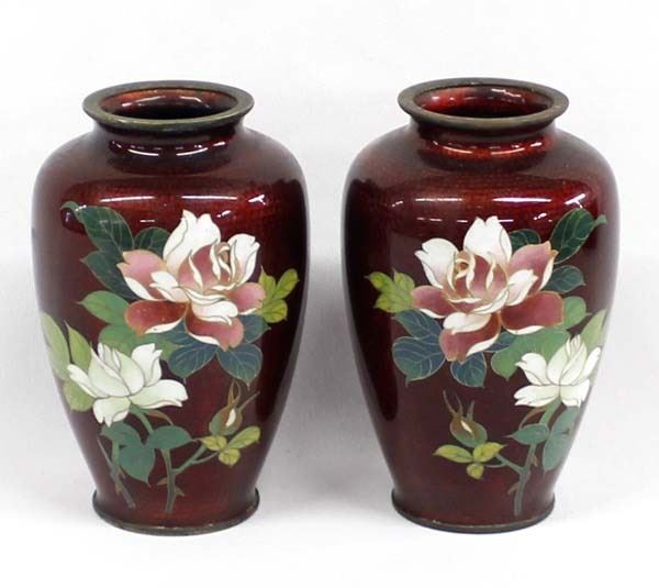 2 Beautiful Cloisonne' Vases, measure 3'' x 5'', flower and leaf motif