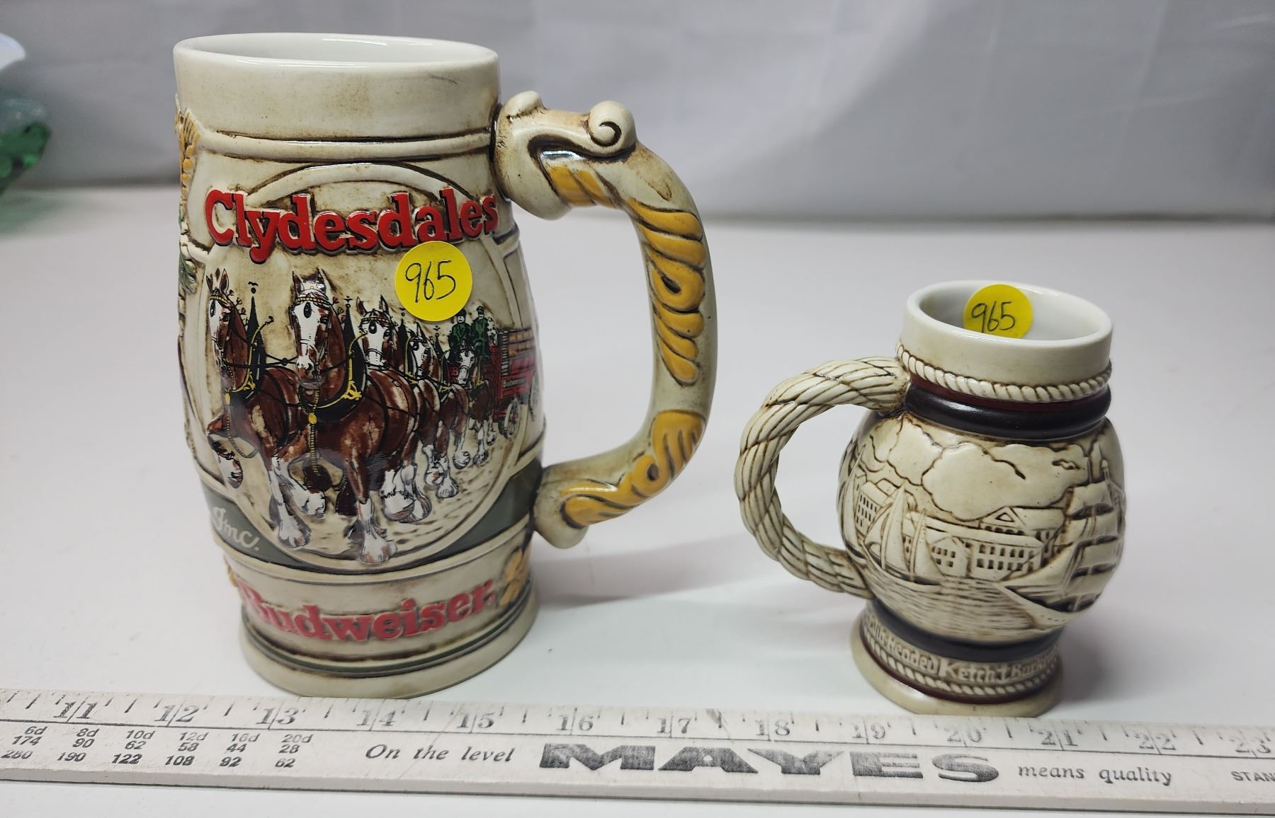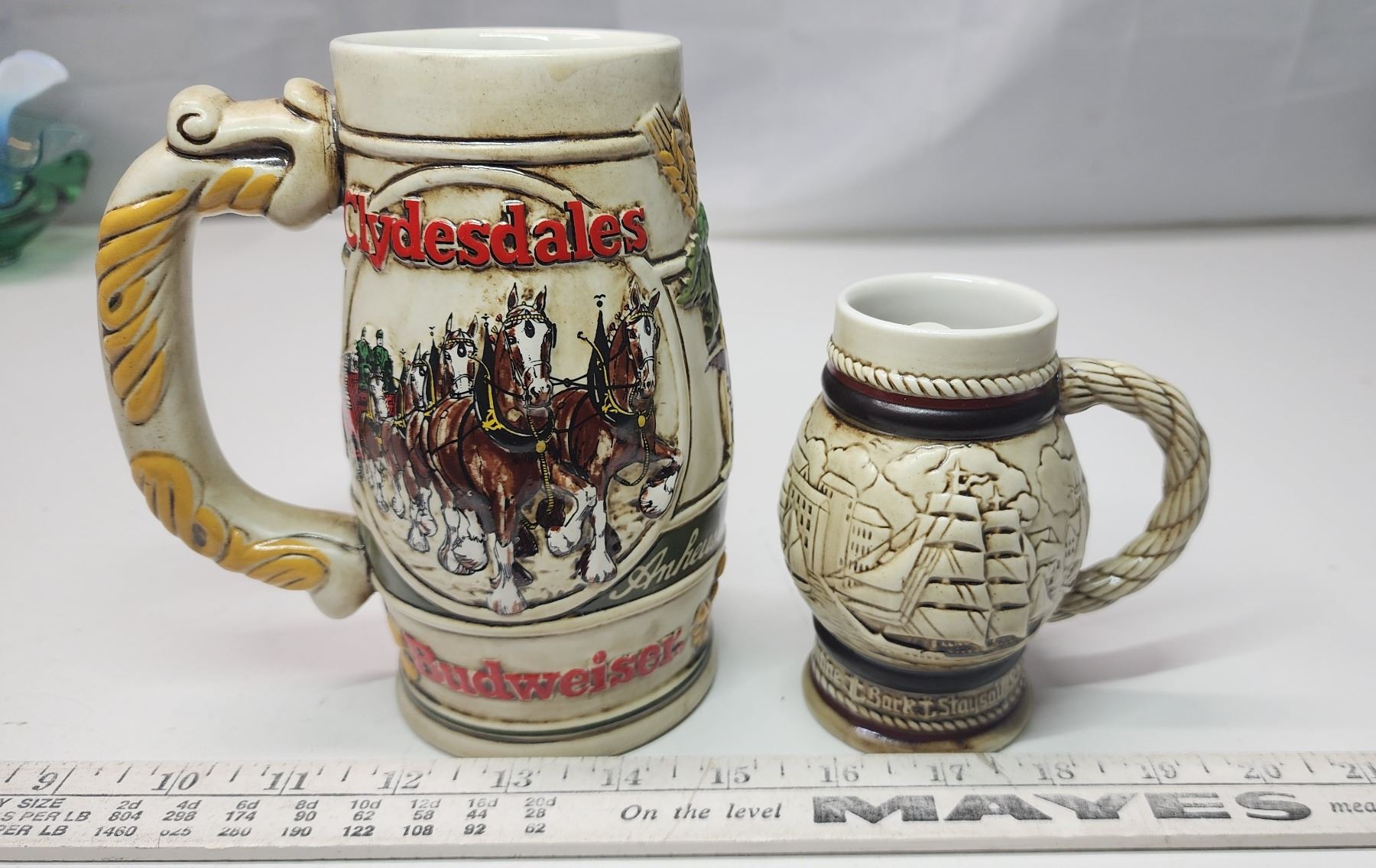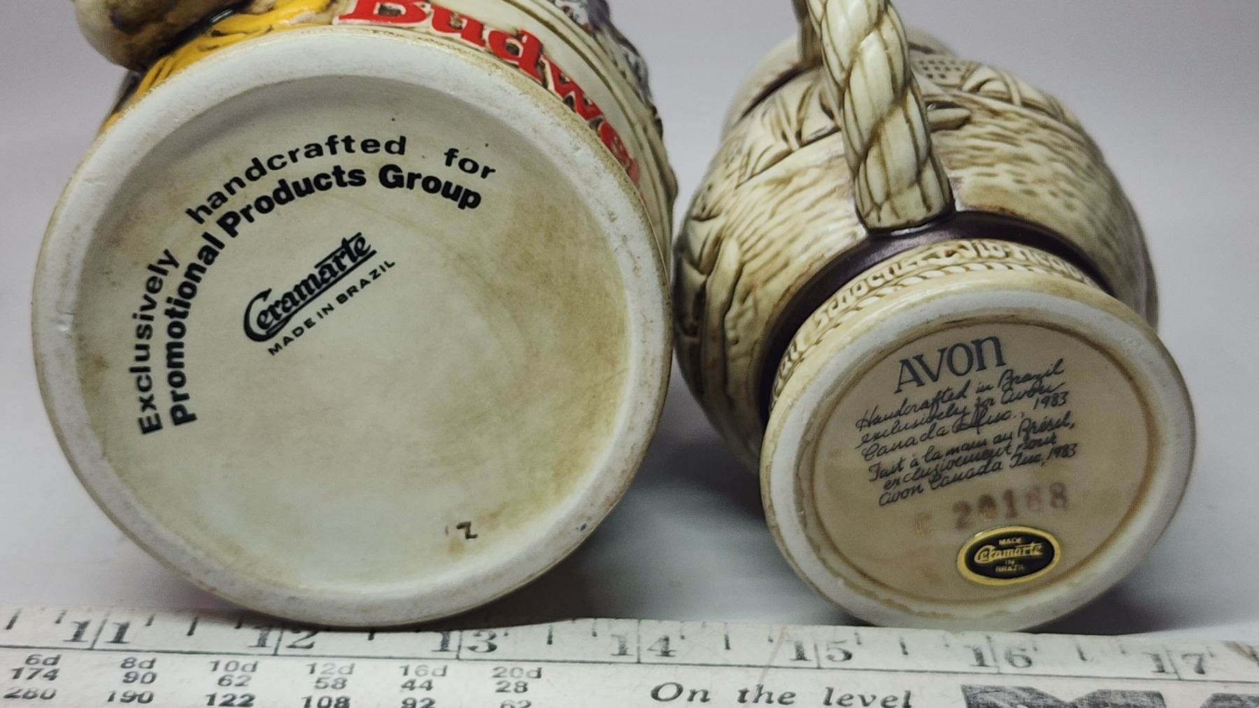 2 Beer stein mugs - Budweiser and Avon
