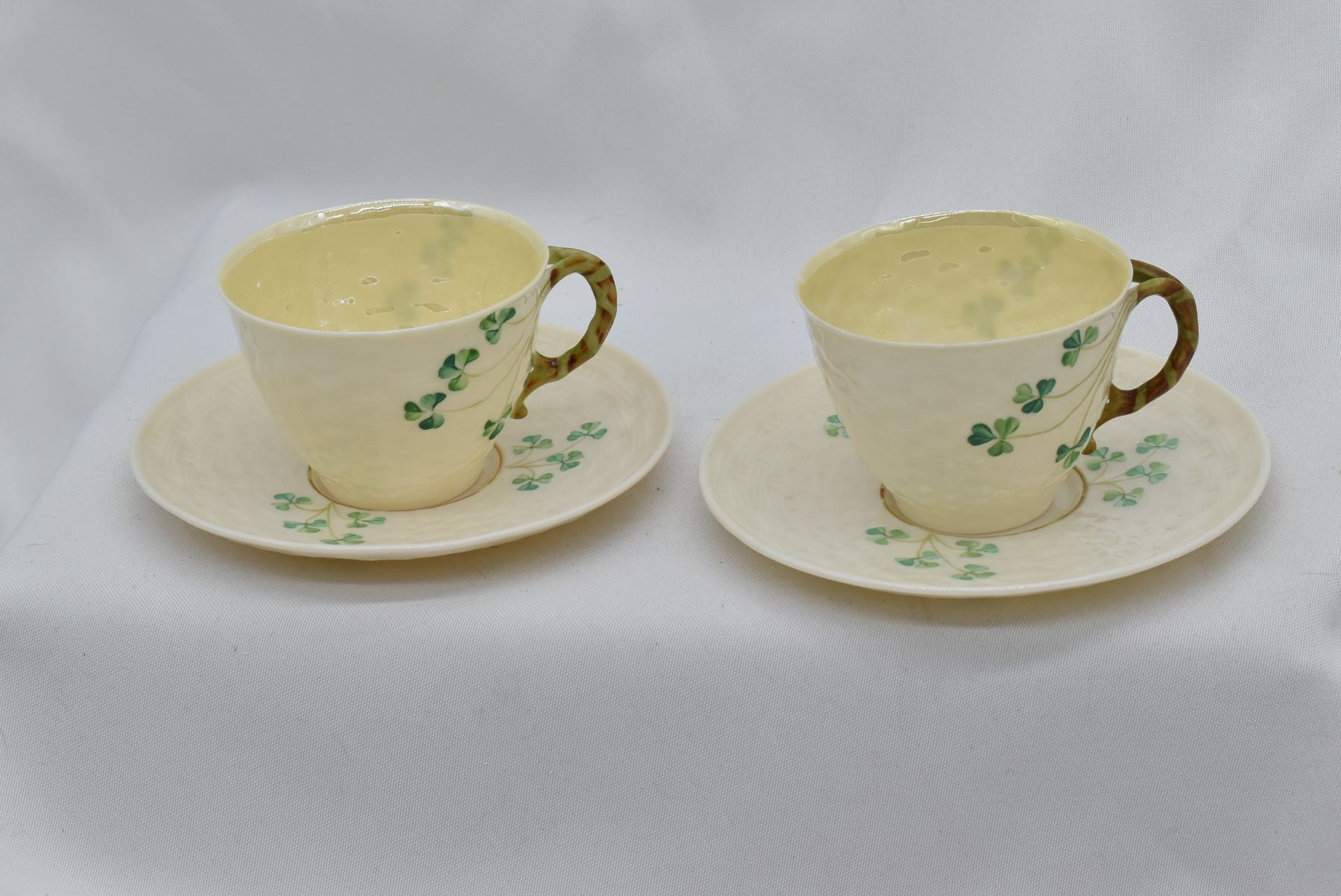 2 Belleek Cups and Saucers, all are marked on the bottom, saucers measure 5.5''D
