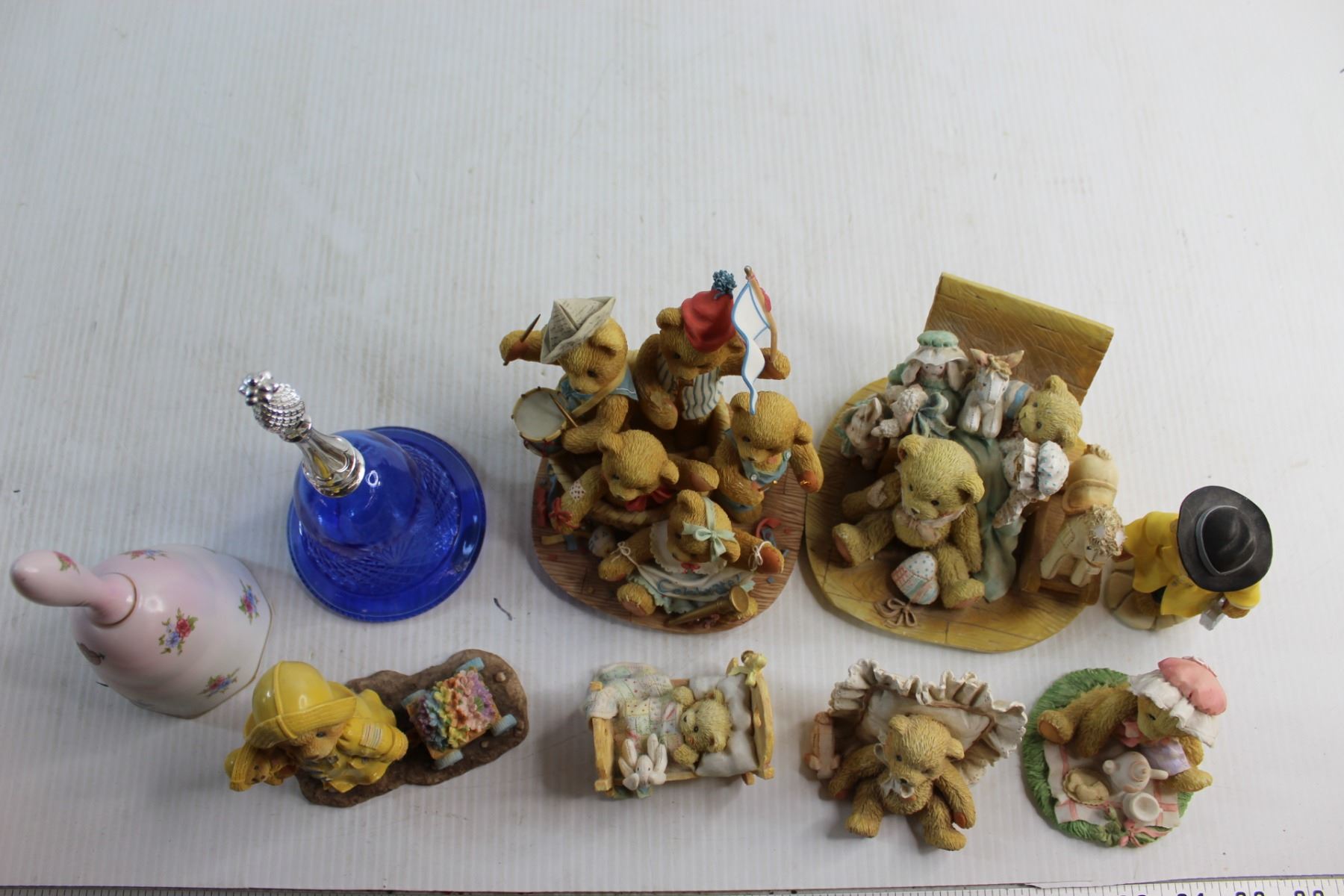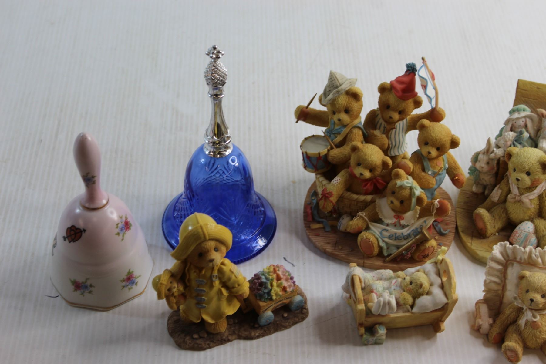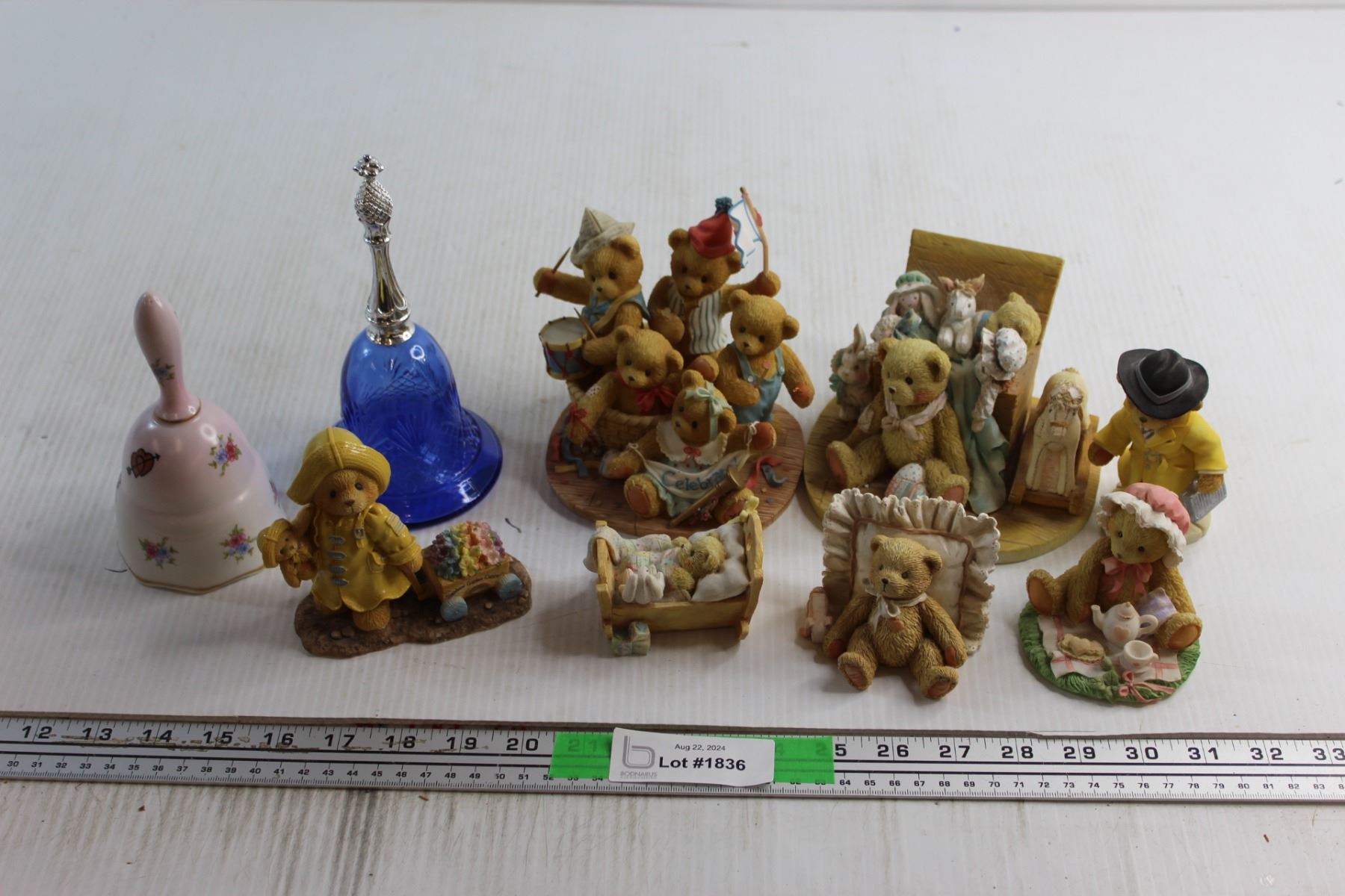(2) Bells and (7) Assorted Ceramic Bear Decorations