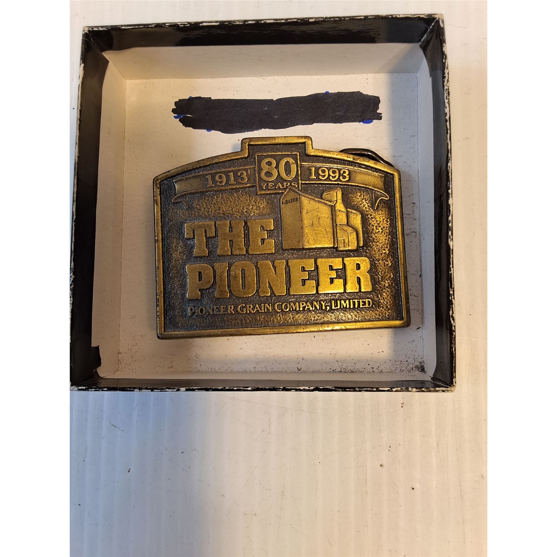 (2) Belt Buckles,The Pioneer and Husky,Cigarette Paper Holder with Papers